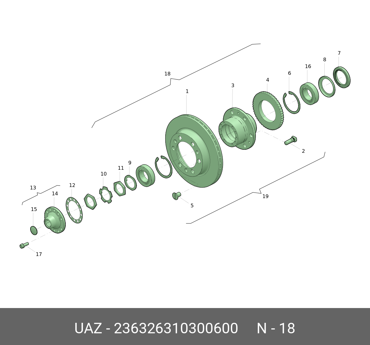 236326310300600 UAZ UAZ Ступица УАЗ Профи передняя в сборе (шпильки,подшипники) (ОАО УАЗ)