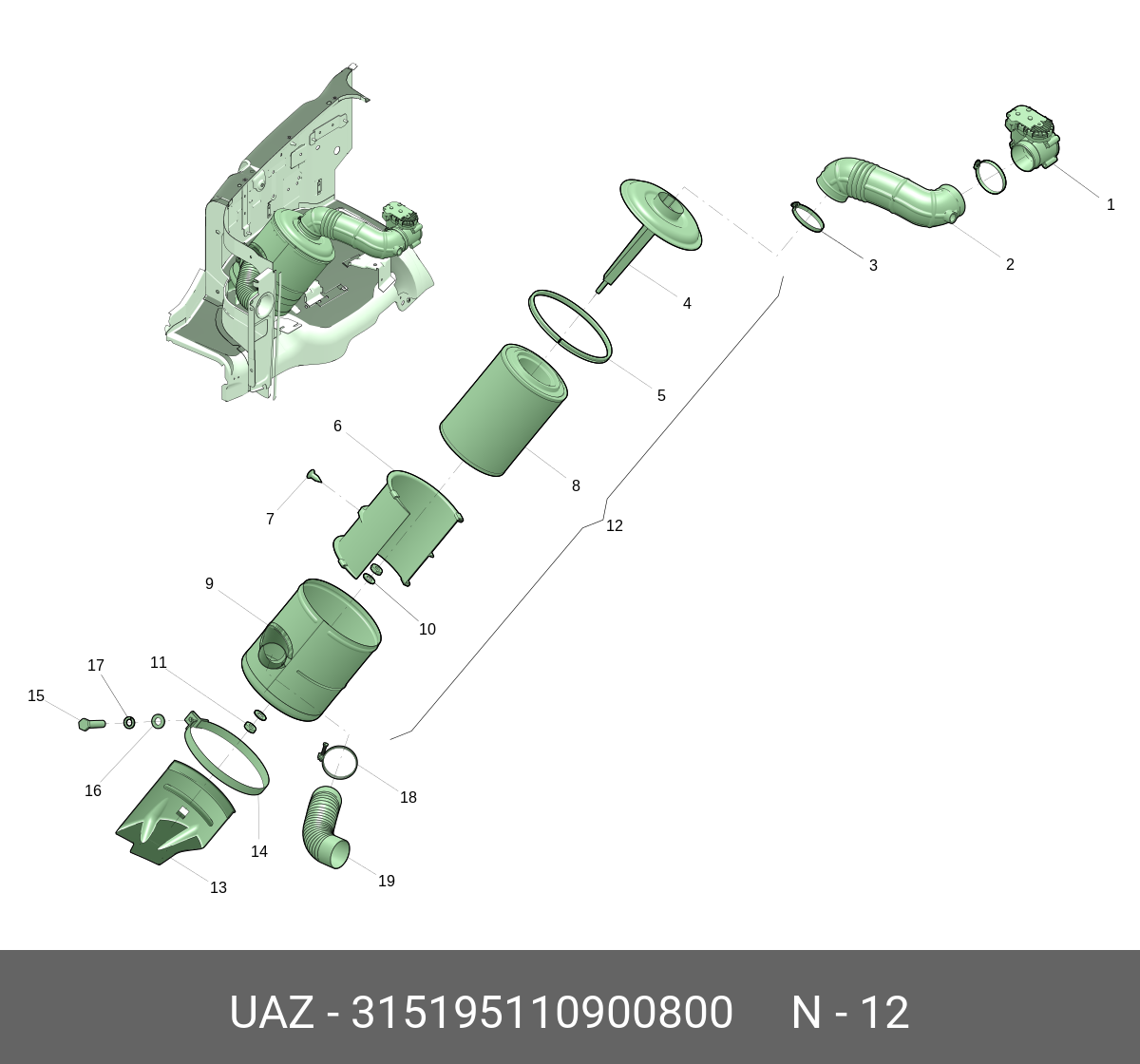 315195110900800 UAZ UAZ Фильтр воздушный УАЗ-315195,3163 дв.ЗМЗ-409 в сборе (ОАО УАЗ)