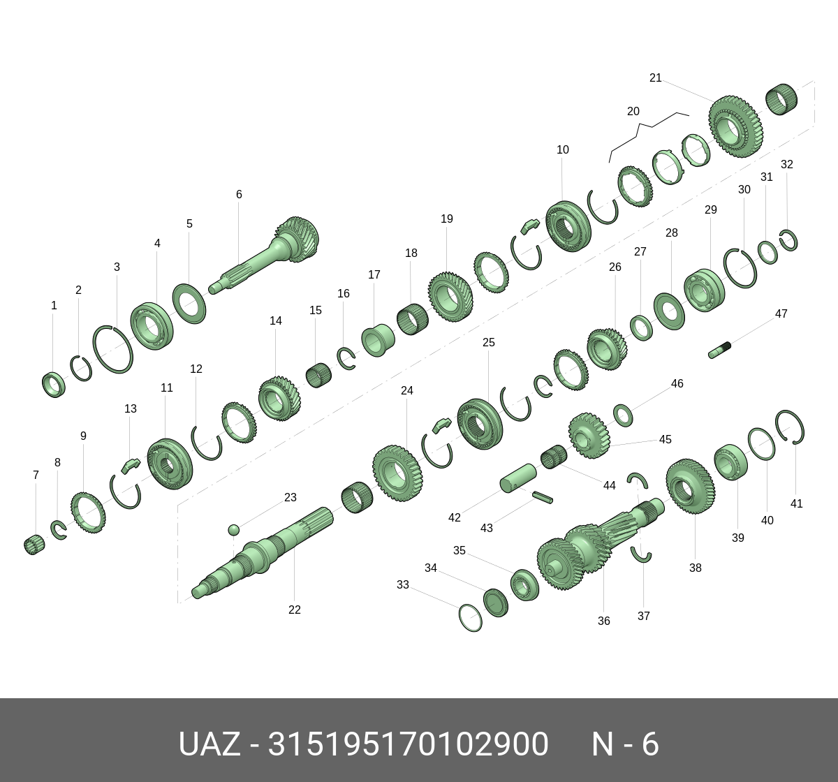 315195170102900 UAZ UAZ Вал КПП УАЗ первичный в сборе 5-ти ст. (ОАО УАЗ)