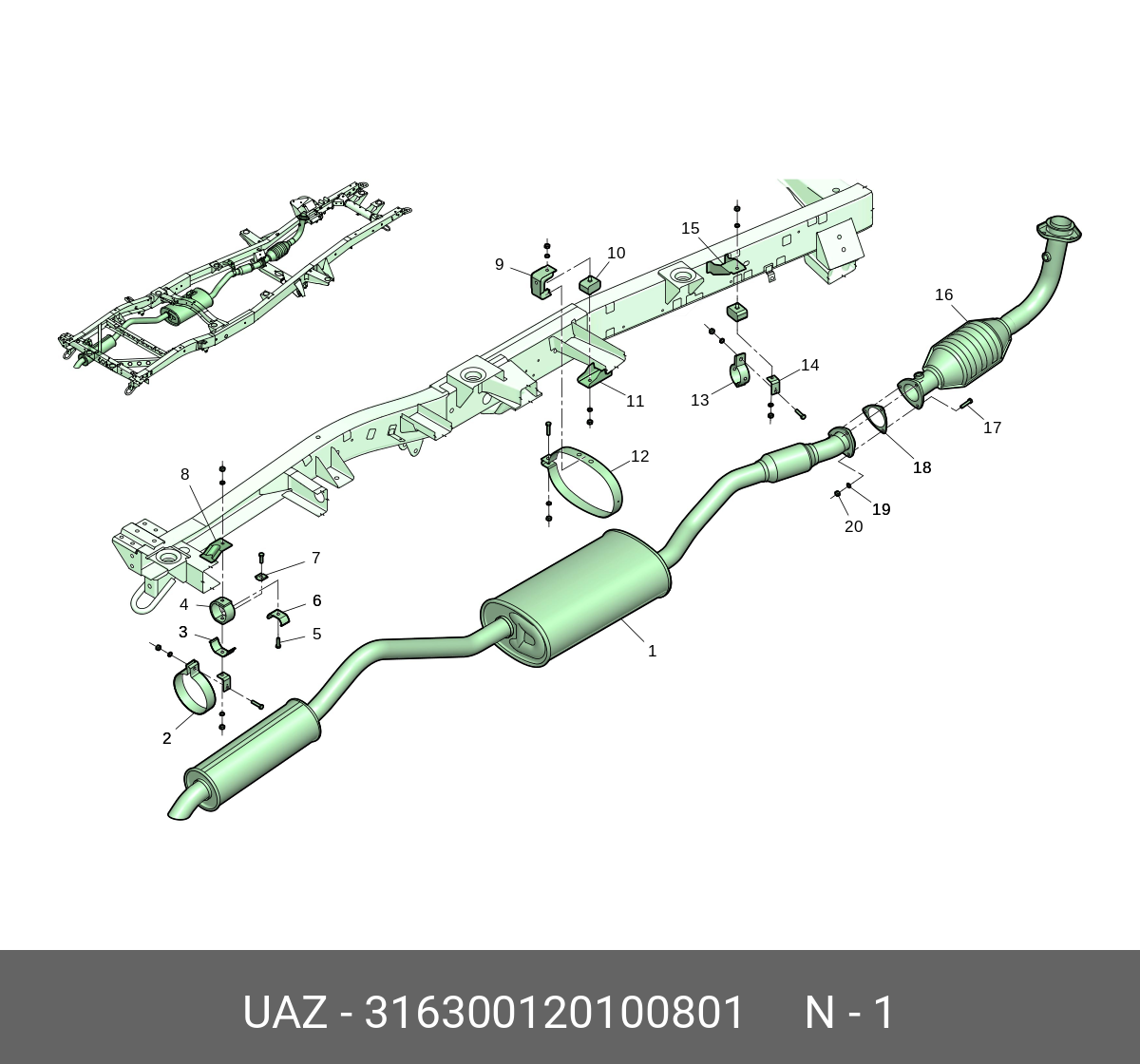 316300120100801 UAZ UAZ Глушитель с резонатором УАЗ Патриот дв. 409 нерж. L-2650/3163-00-1201008-01