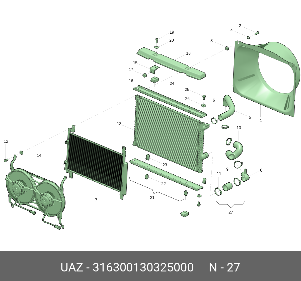 316300130325000 UAZ UAZ Патрубок УАЗ-3163 (18-) радиатора комплект (ОАО УАЗ)