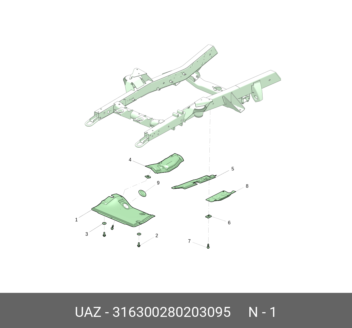 | Наименование | Брызговик УАЗ-3163 (с 2008 г.в.) двигателя передний (ОАО УАЗ) |