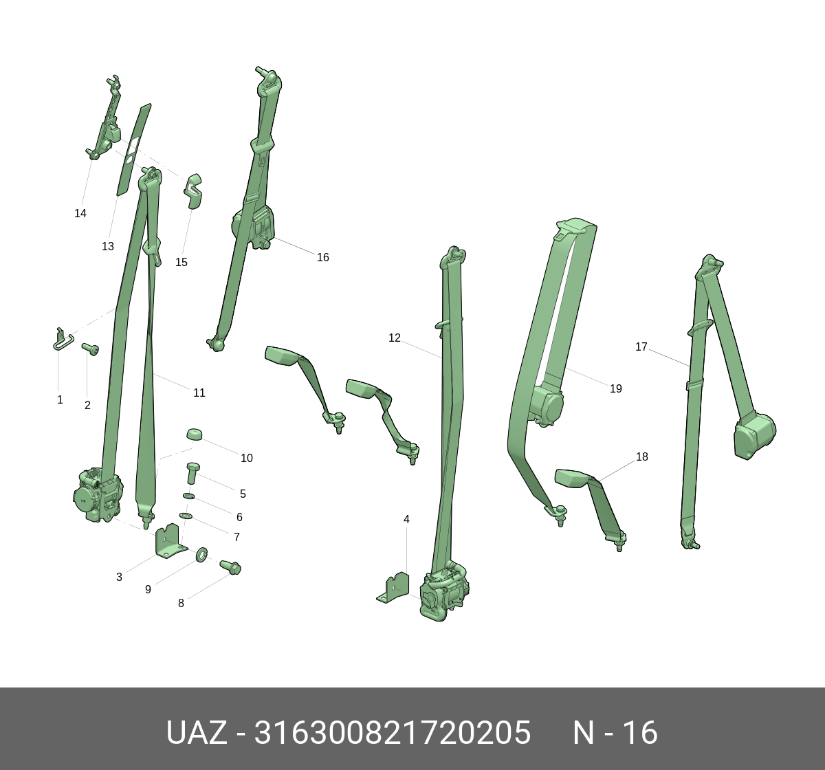 316300821720205 UAZ UAZ Ремень УАЗ-3163 безопасности задний правый (ОАО УАЗ)