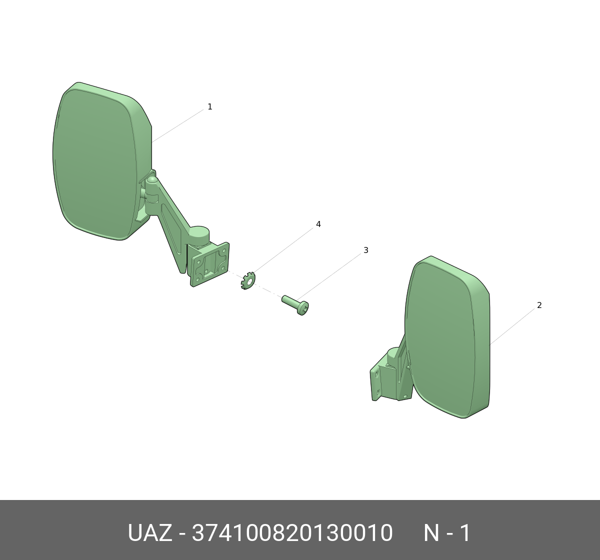 374100820130010 UAZ UAZ Зеркало боковое УАЗ-3741,452 в корпусе ГАЗЕЛЬ правое (короткий кронштейн) (ОАО У