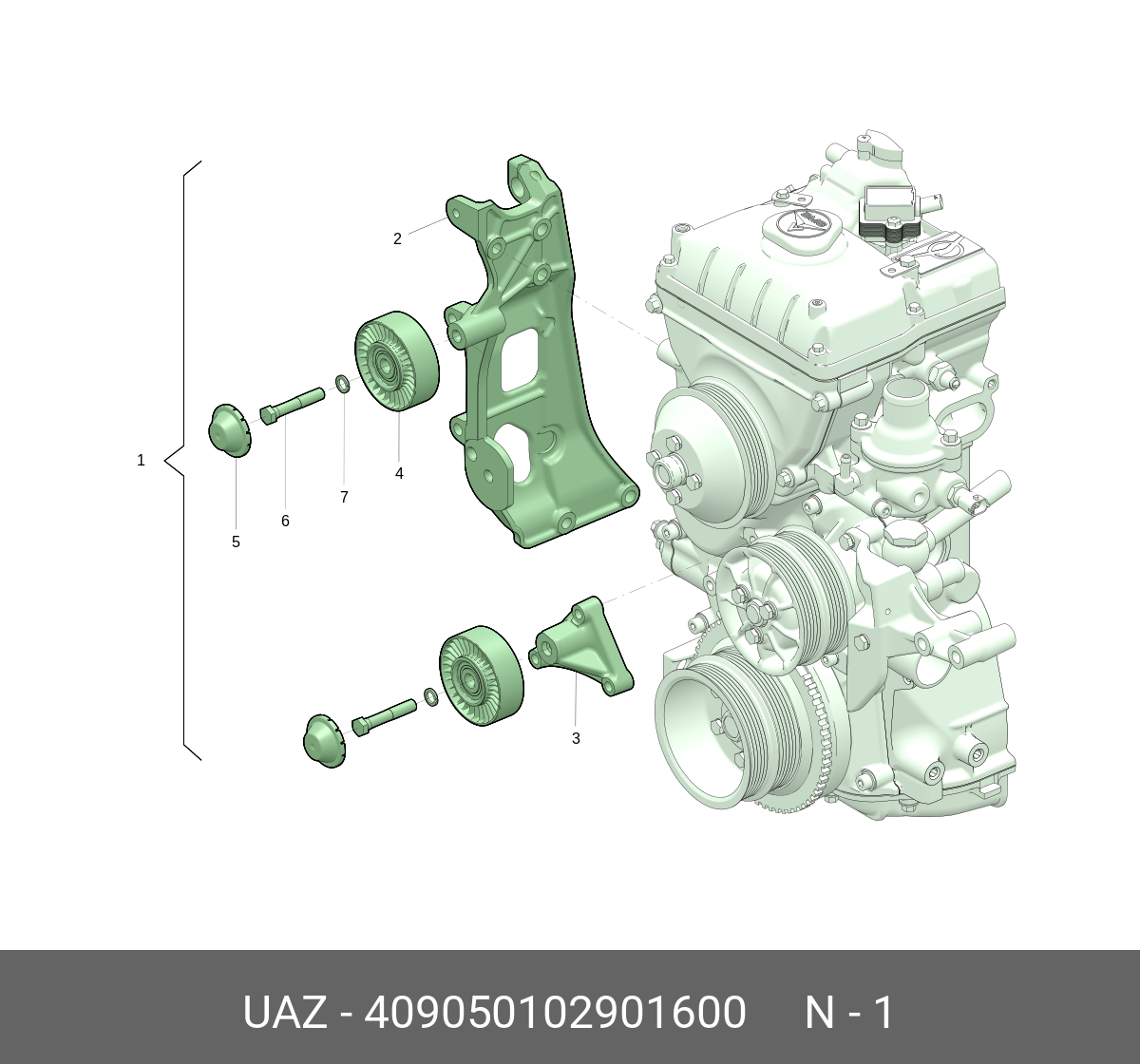 409050102901600 UAZ UAZ Ролик натяжной ЗМЗ-40904,40905,40906 с кронштейном ремня привода агрегатов компл