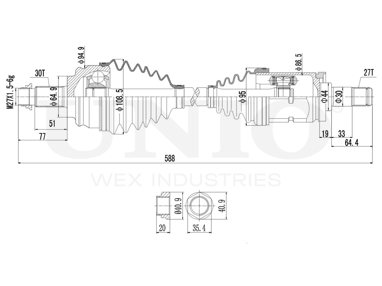 | Резьба, диаметр, шаг, длина [мм] | M27x1,5 |