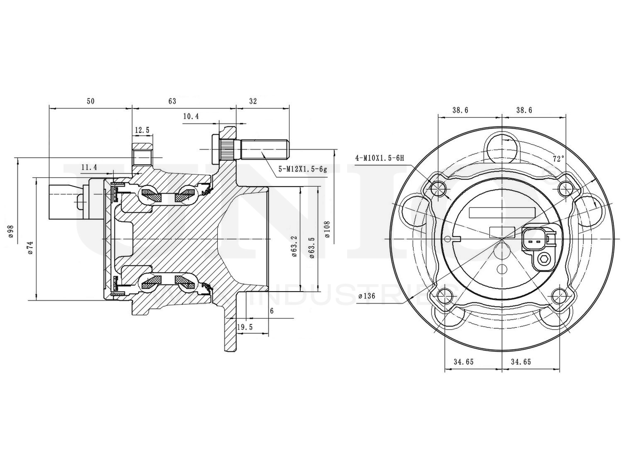 HUB-20016 UNIO Ступица задняя (с ABS)