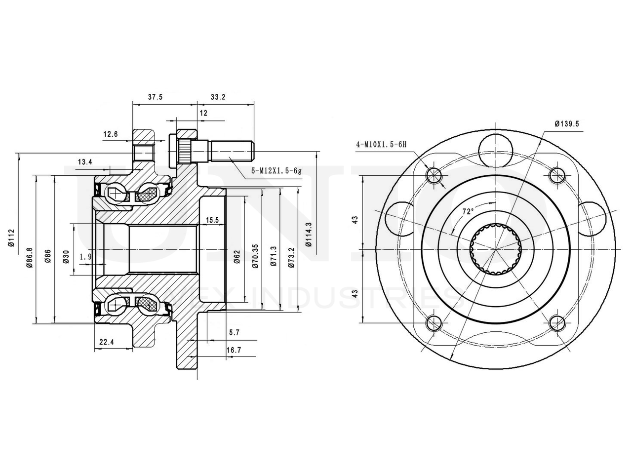 HUB-20038 UNIO Ступица передняя (без ABS)