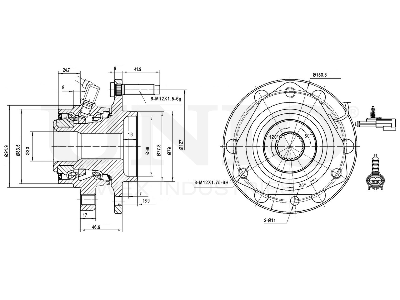 HUB-20114 UNIO Ступица передняя (с ABS)
