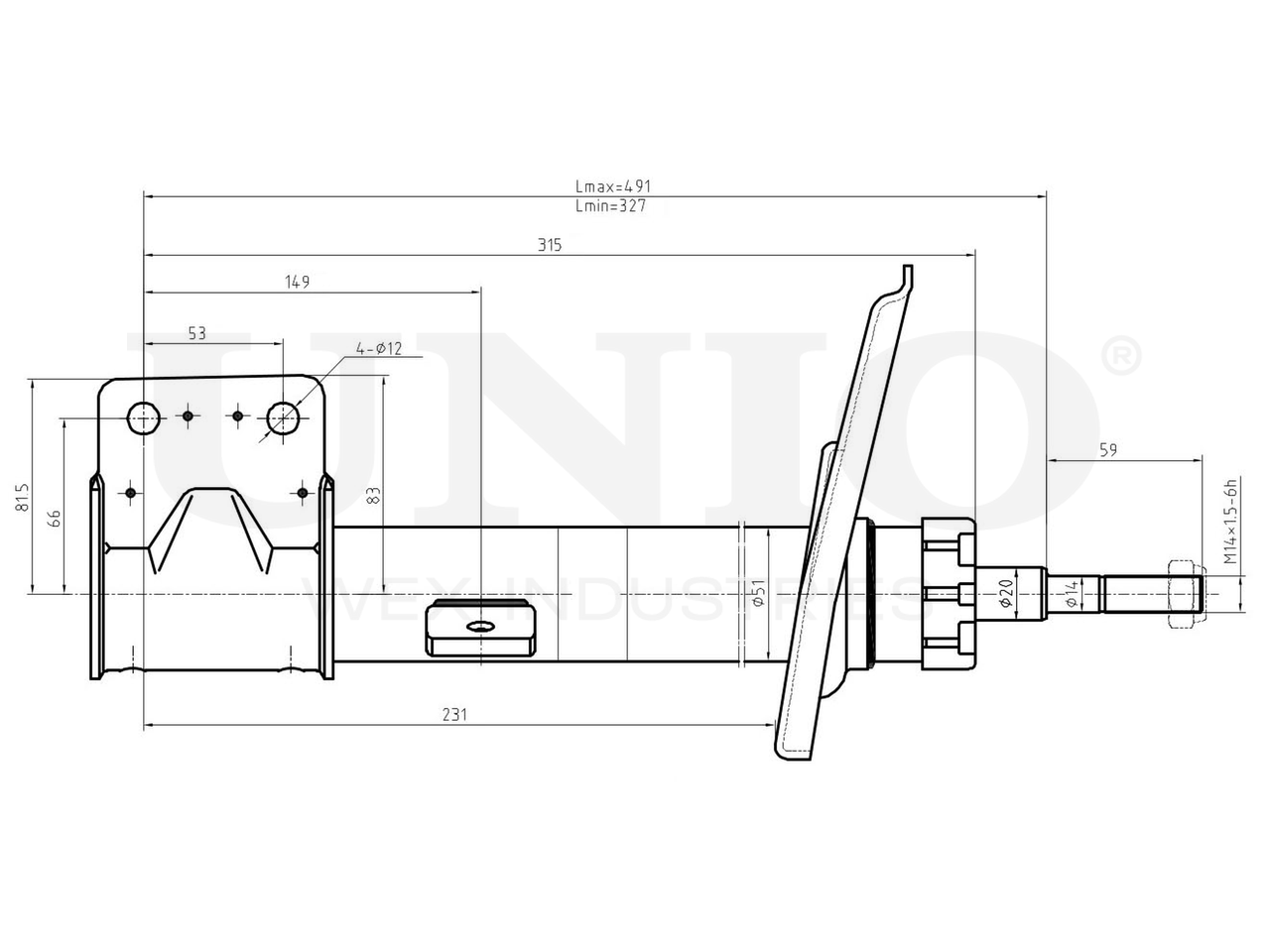 SAB-10062 UNIO Амортизатор газовый передней подвески левый