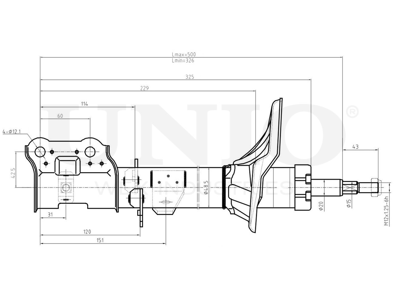 SAB-10172 UNIO Амортизатор газовый передней подвески левый
