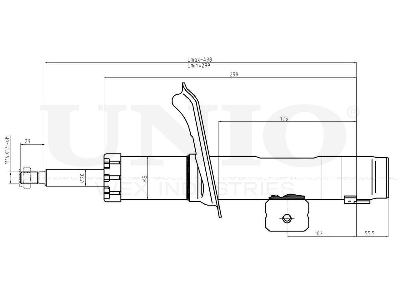 SAB-10284 UNIO Амортизатор газовый передней подвески левый