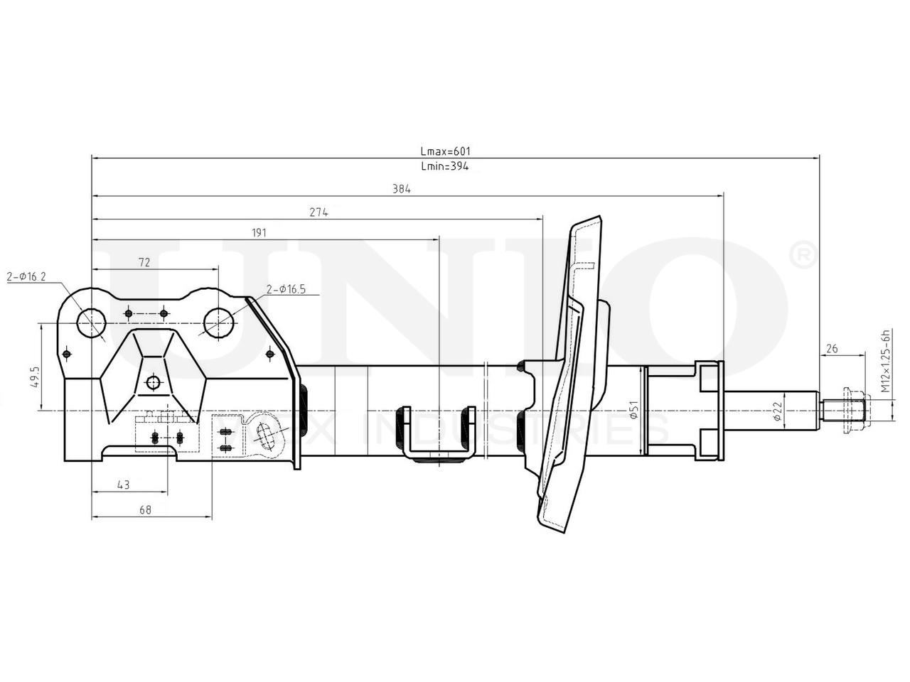 SAB-10317 UNIO Амортизатор газовый передней подвески левый