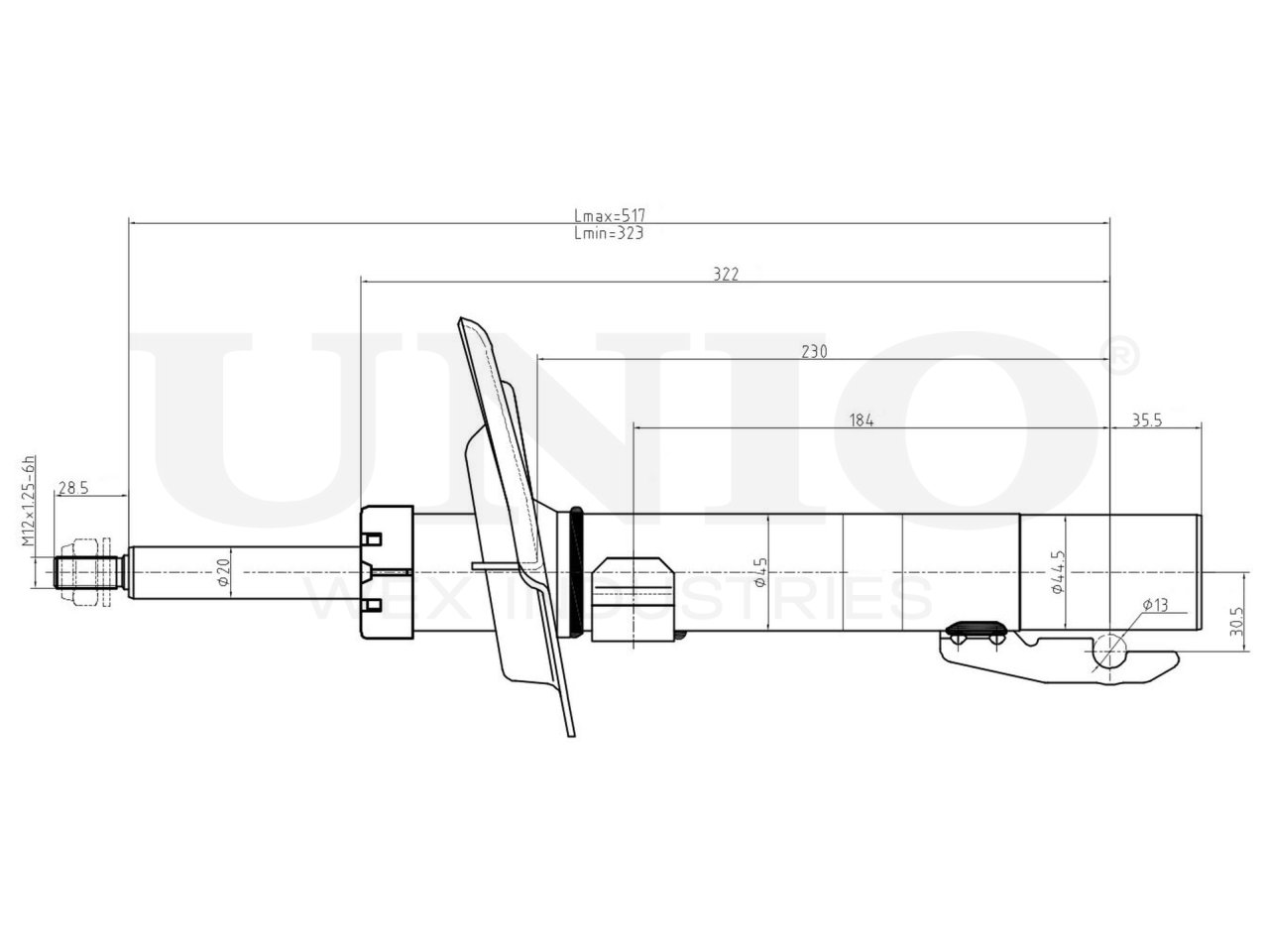 SAB-10628 UNIO Амортизатор газовый передней подвески