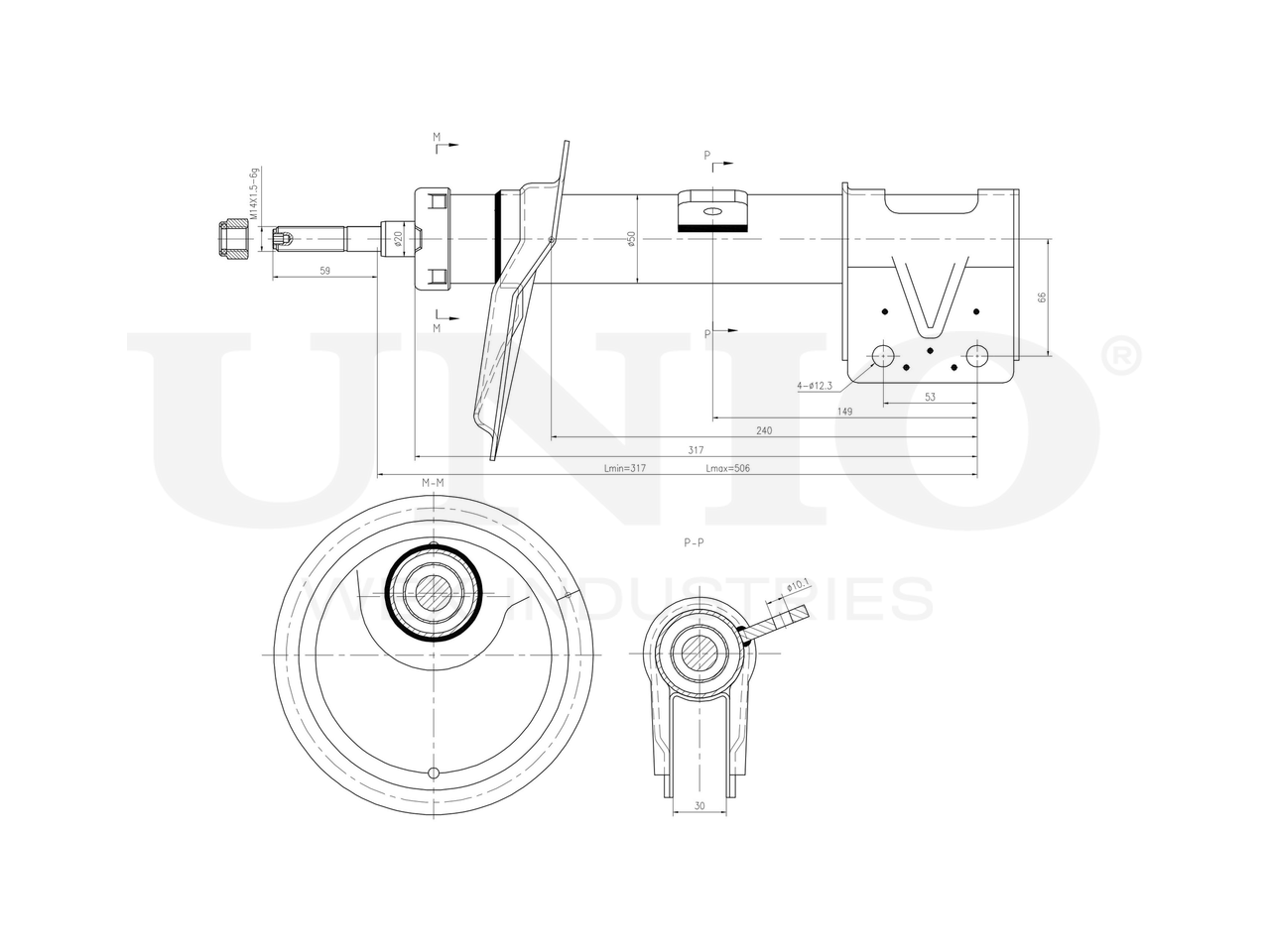 SAB-20009 UNIO Амортизатор газовый передней подвески левый