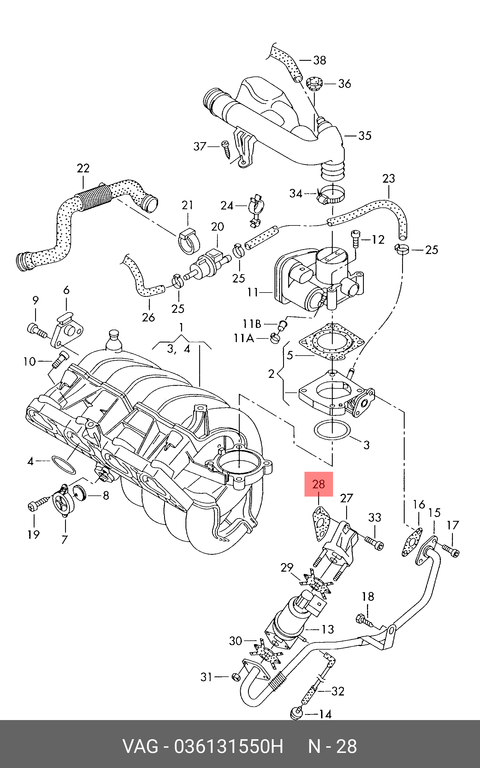 036 131 550 H VAG SEAT ALTEA (2004>) прокладка адаптера клапана рециркуляции