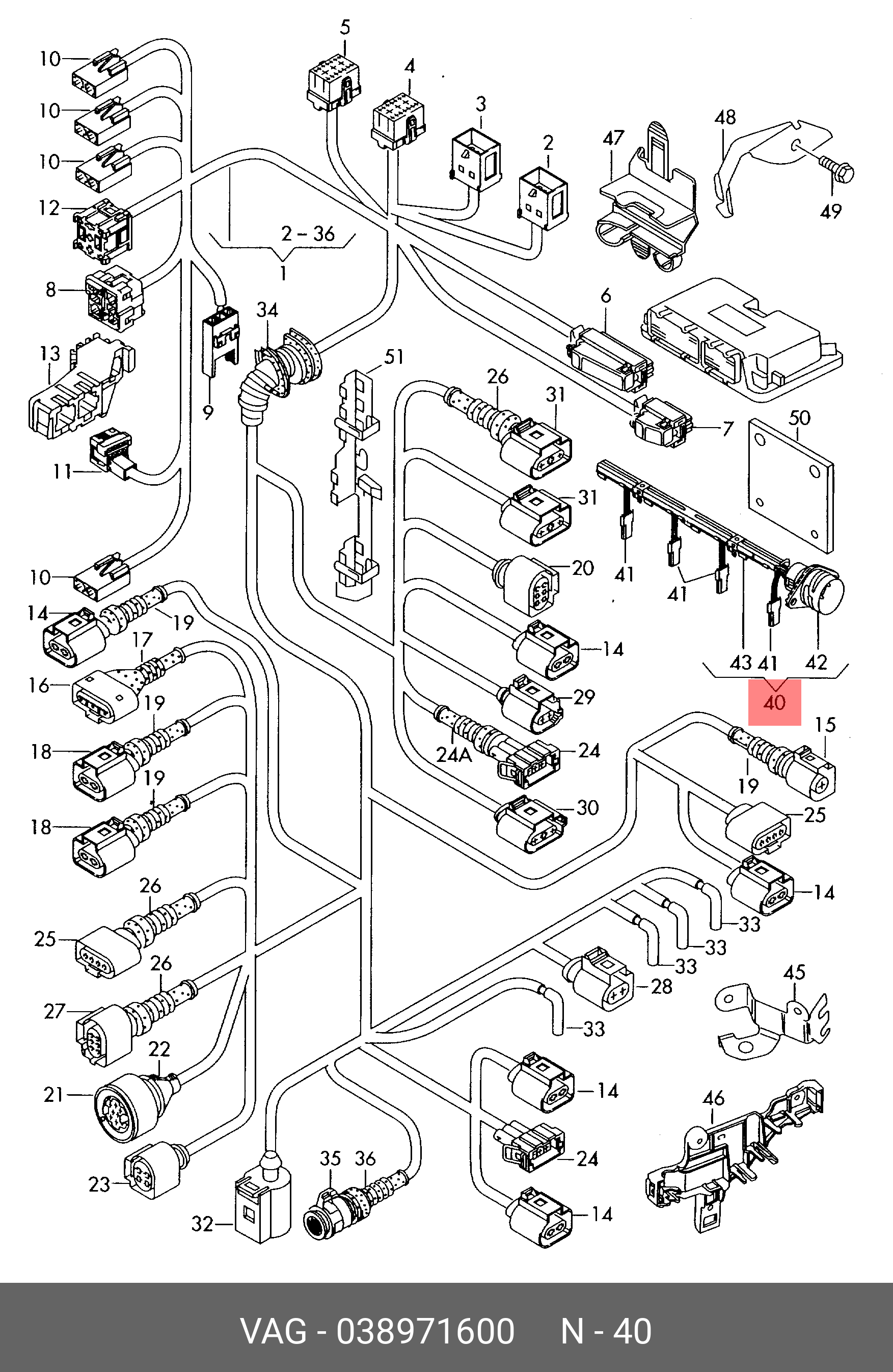 038 971 600 VAG жгут проводов с направляющей планкой!\ VW