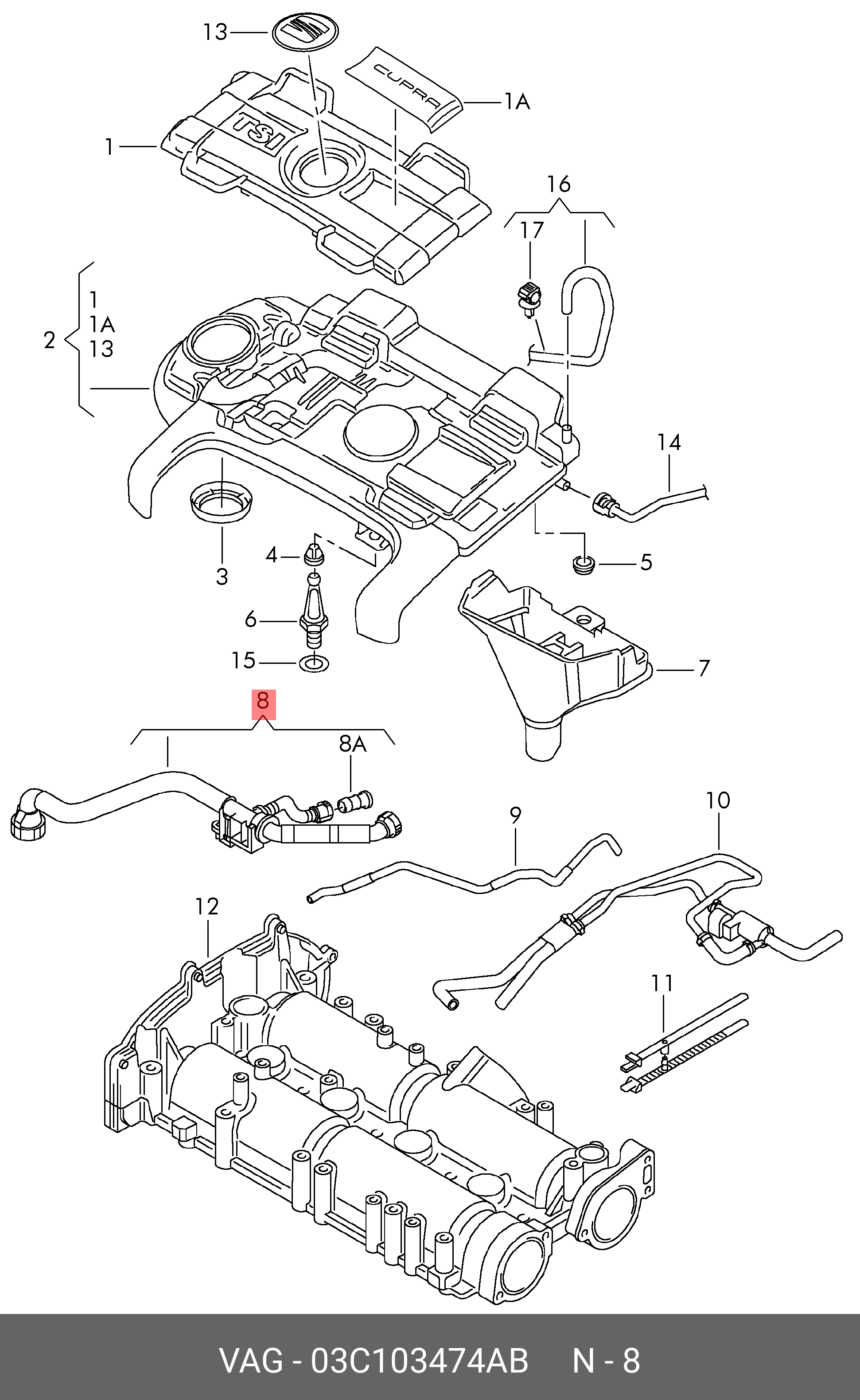 03C 103 474 AB VAG к-т патрубков!\ VW Golf VI 09-12