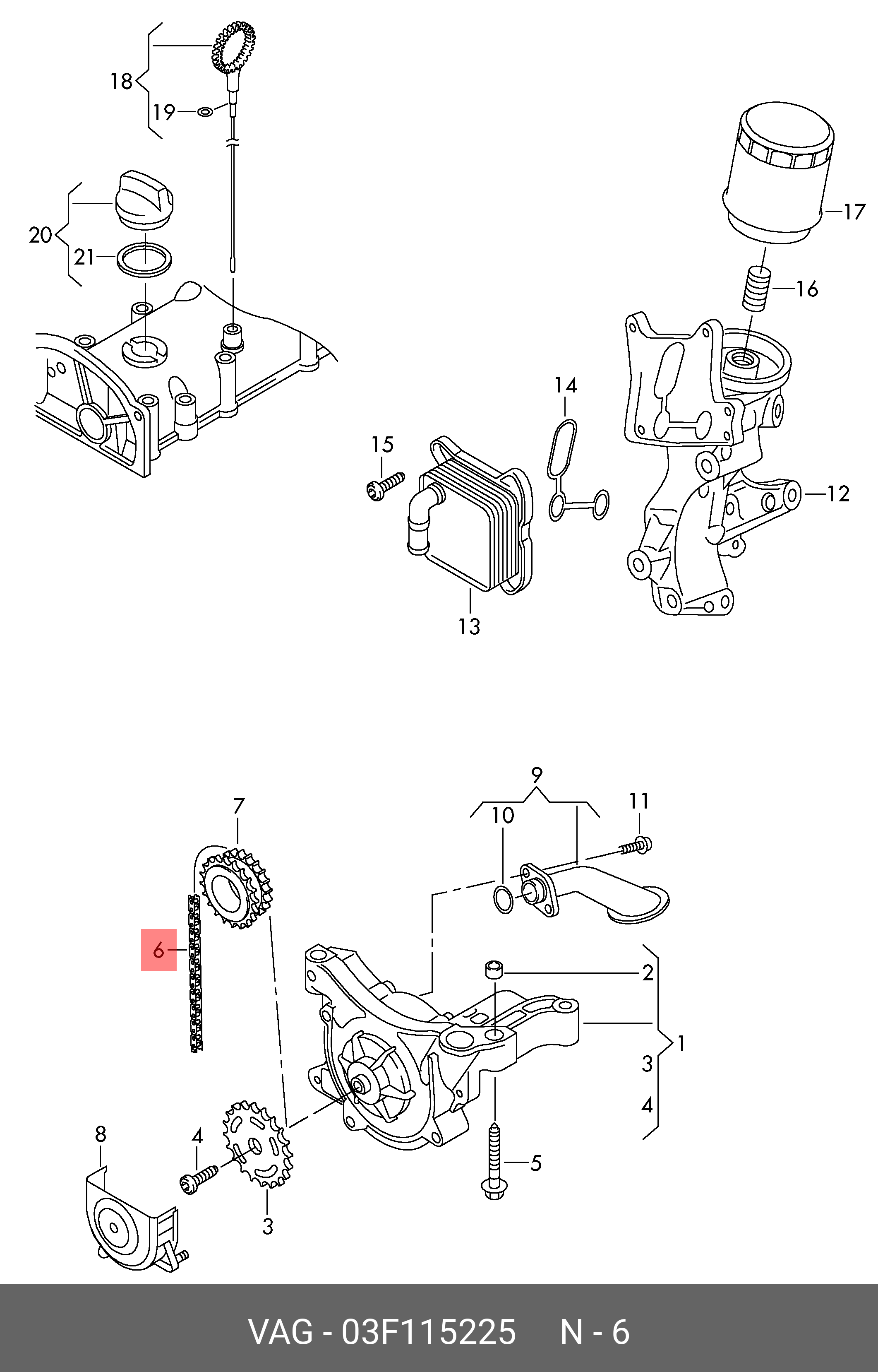 03F 115 225 VAG Цепь VW Caddy,Golf,Polo,Touran AUDI A1,A3 (10-) привода насоса масляного OE