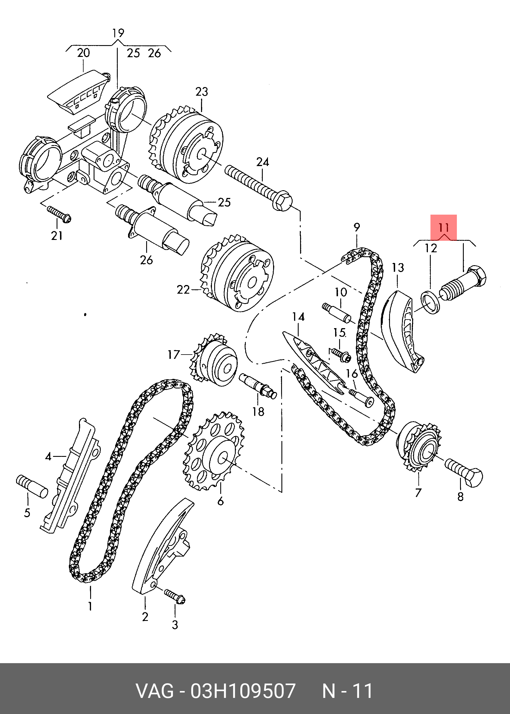 03H 109 507 VAG натяжитель цепи ГРМ!\ Audi A3/Q7/TT, VW Passat/Golf 03>