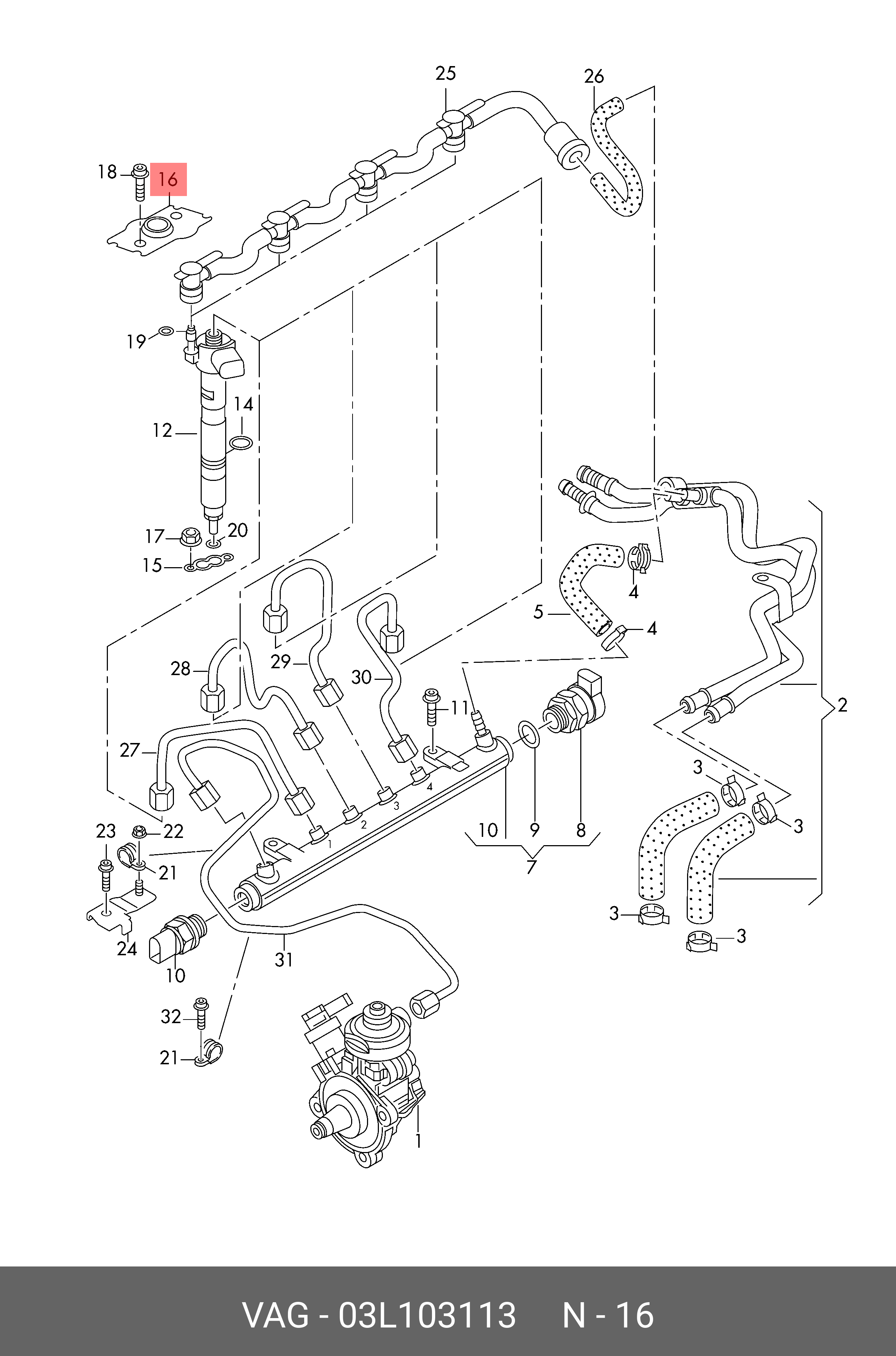 03L 103 113 VAG крепеж форсунки!\ Audi A3/A4/A5 07-16, VW Passat CC 08-17, Skoda Superb 08-15