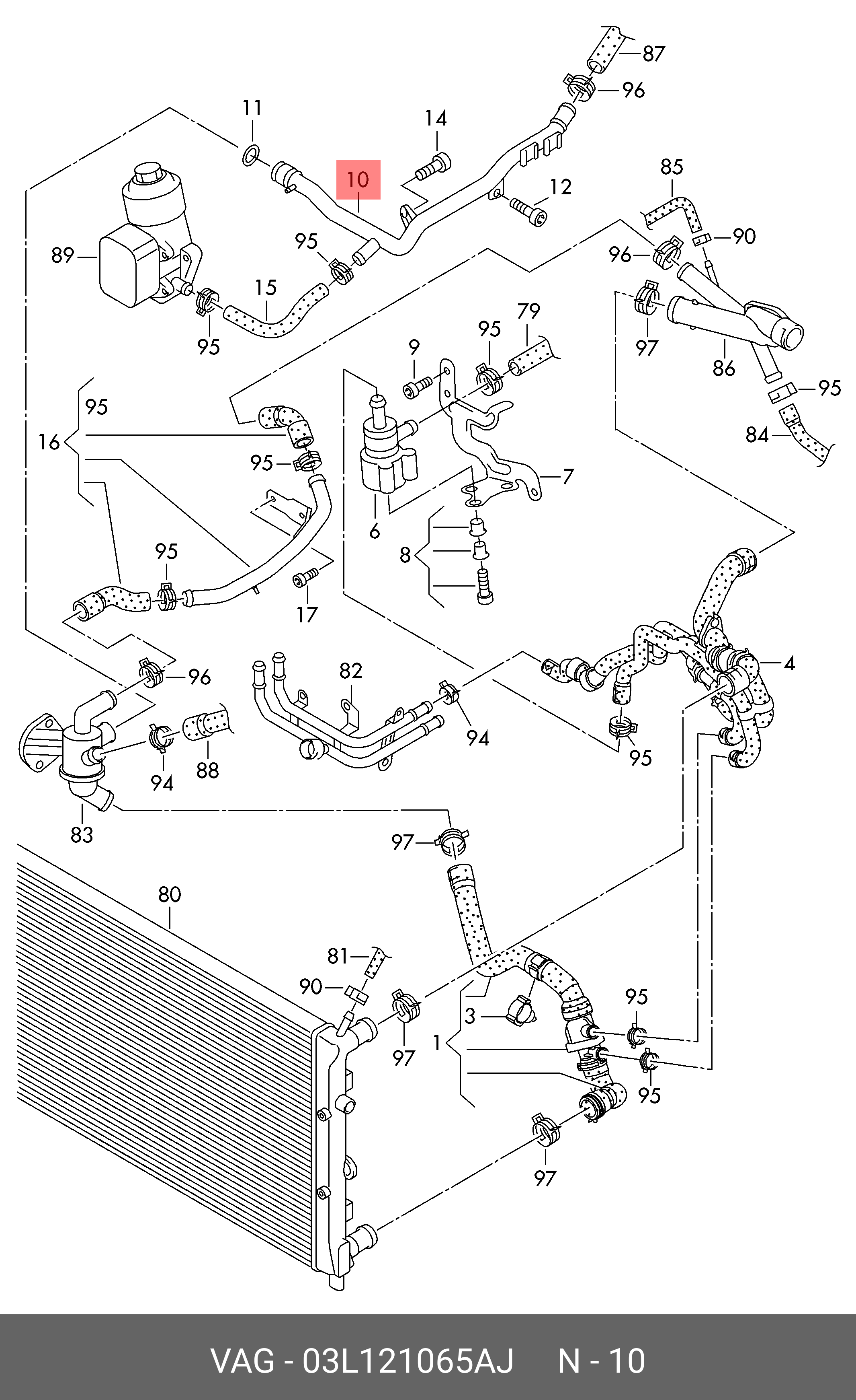 03L 121 065 AJ VAG трубка системы охлаждения!\ VW Passat 7, Audi A3 8P1/8P7/8PA