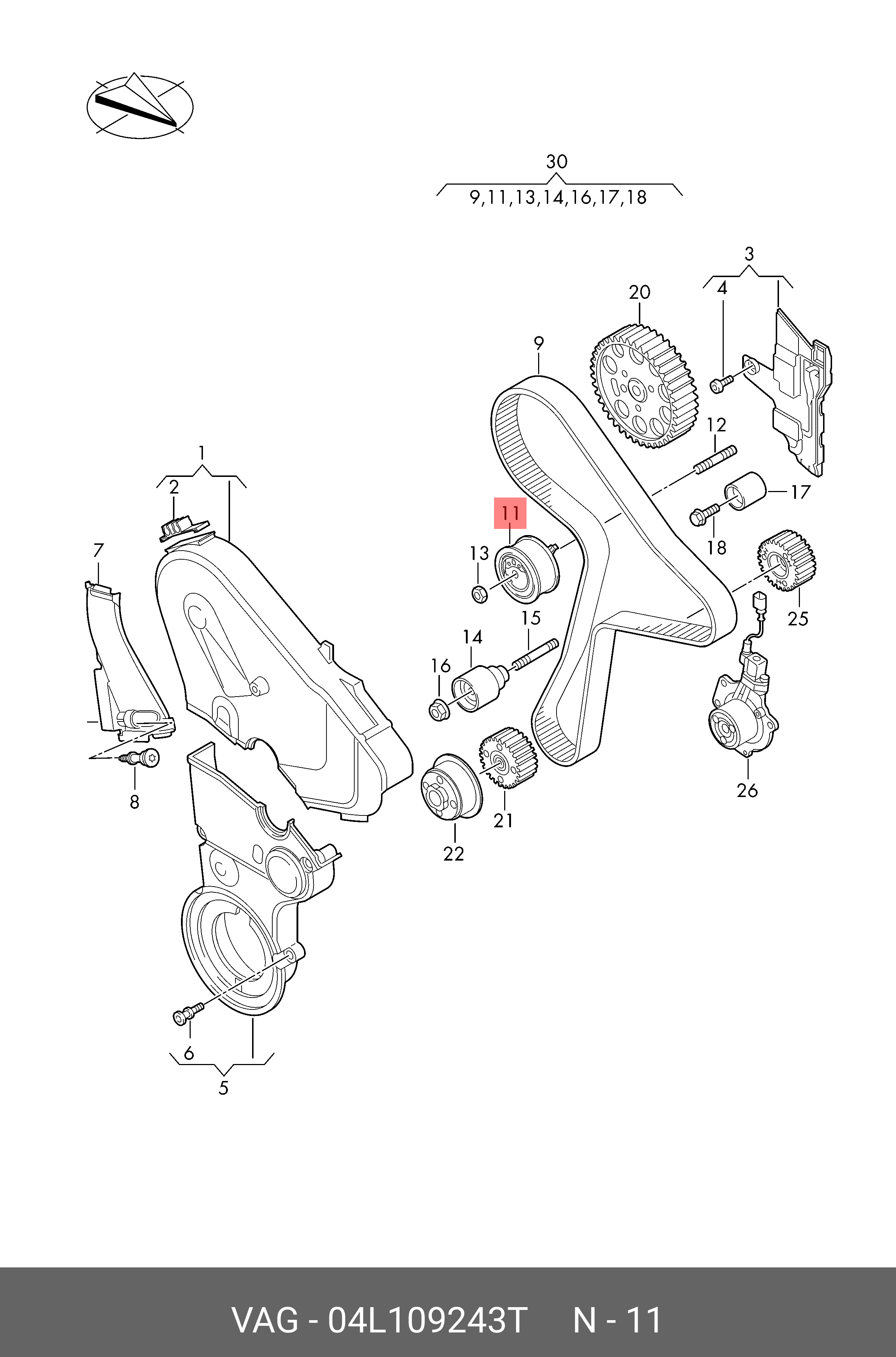 04L109243T VAG РОЛИК НАТЯЖНОЙ 04L109243T