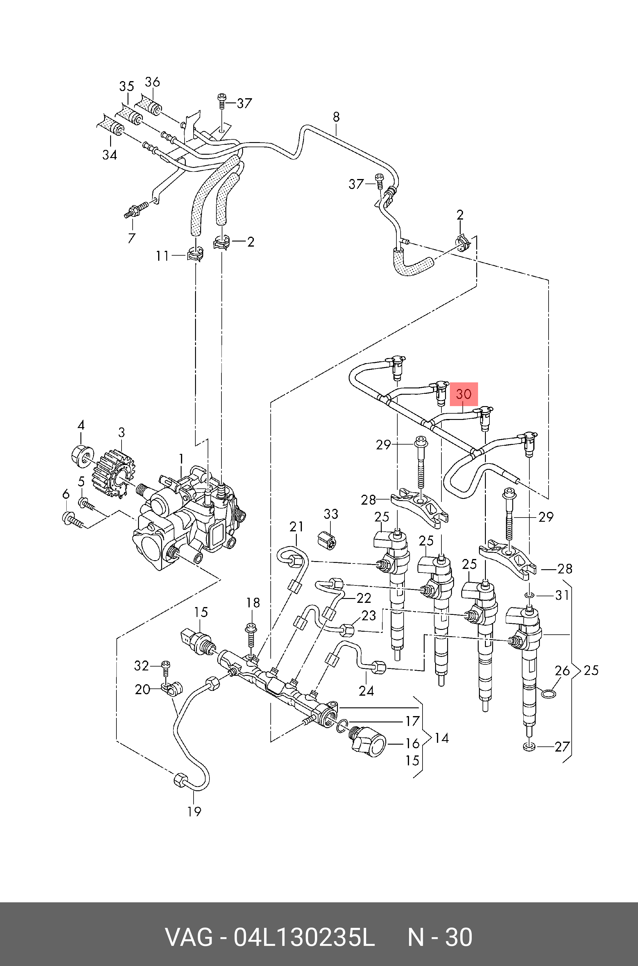 04L 130 235 L VAG Трубка топливная возвратная 04L130235L
