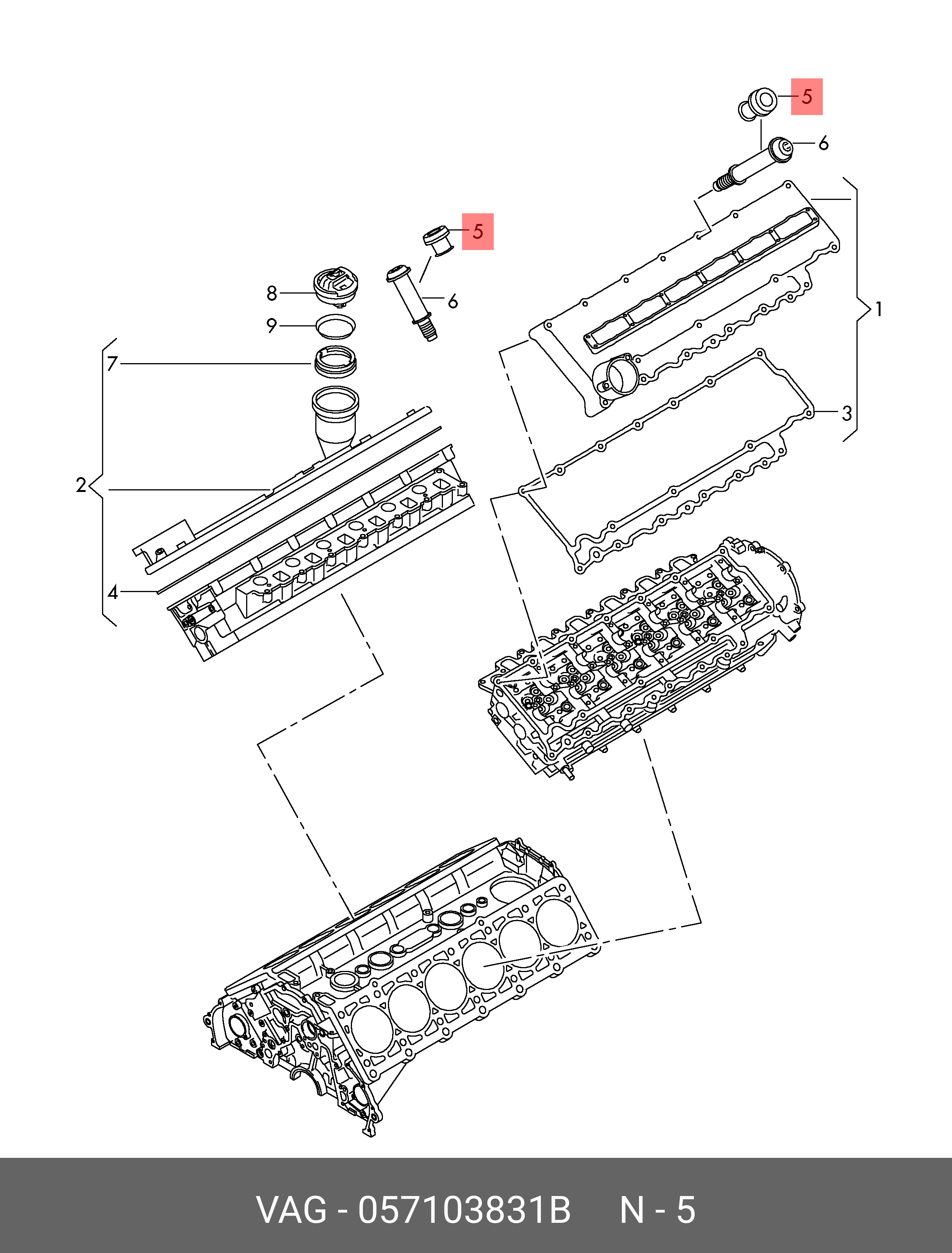 057 103 831 B VAG Втулка направляющая болта крышки ГБЦ металлическая 057103831B