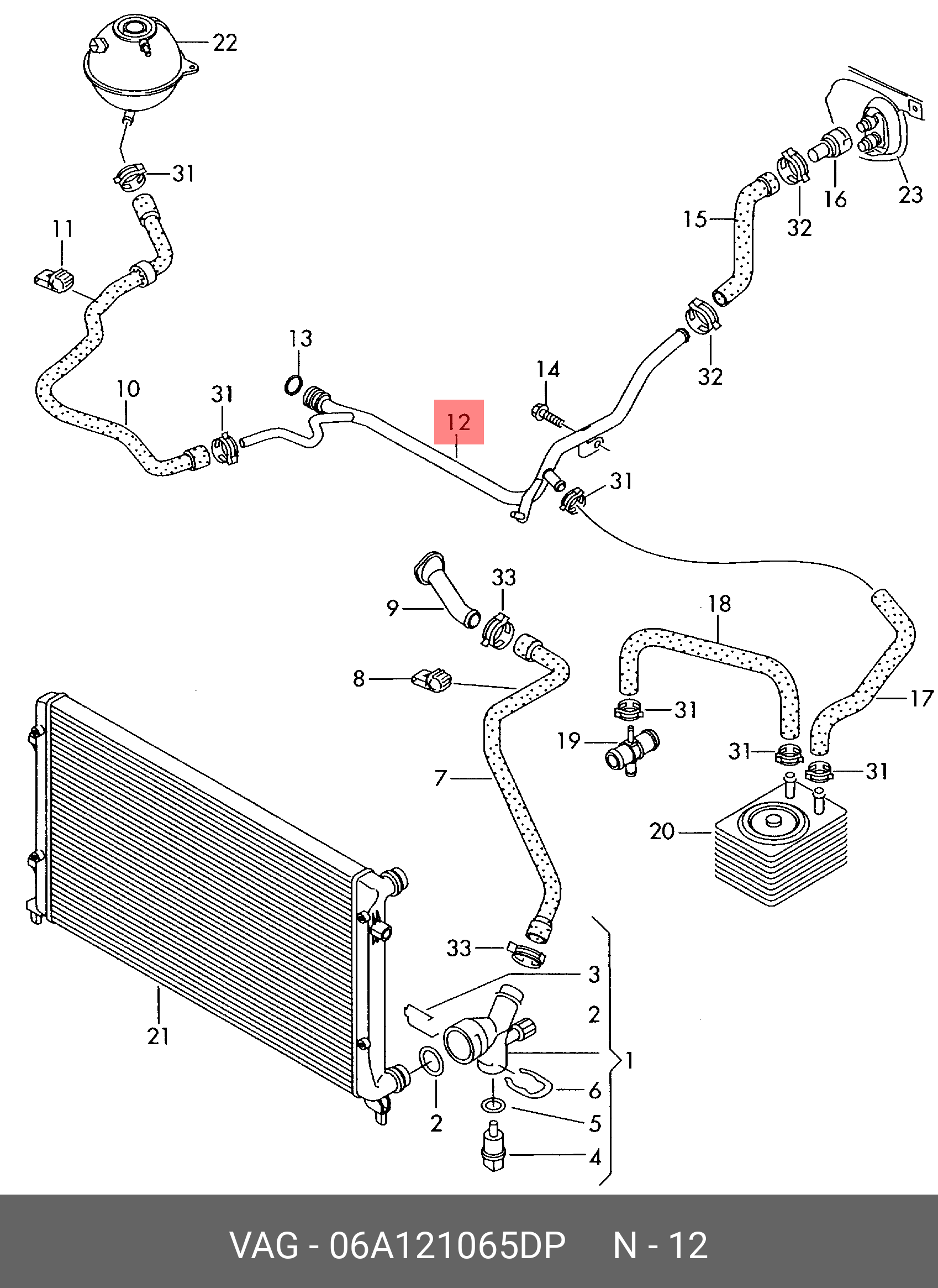 06A 121 065 DP VAG трубка охл. жидкости !\ Audi A1/A3,Skoda Fabia/Octavia, VW Golf/Jetta/Passat 05>