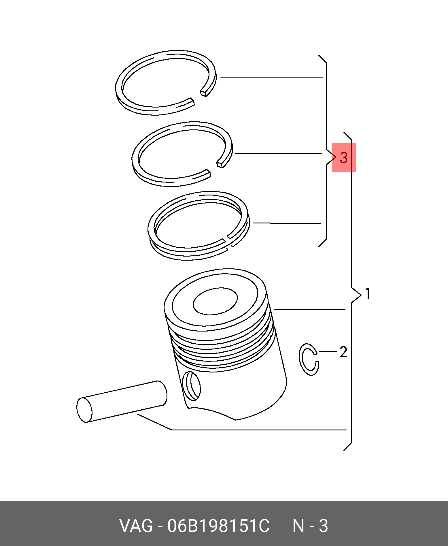 06B 198 151 C VAG Кольца поршневые VW Golf (05),Jetta (05-10),Passat (05-10) (1.6) (BSE,BSF) d+0.0