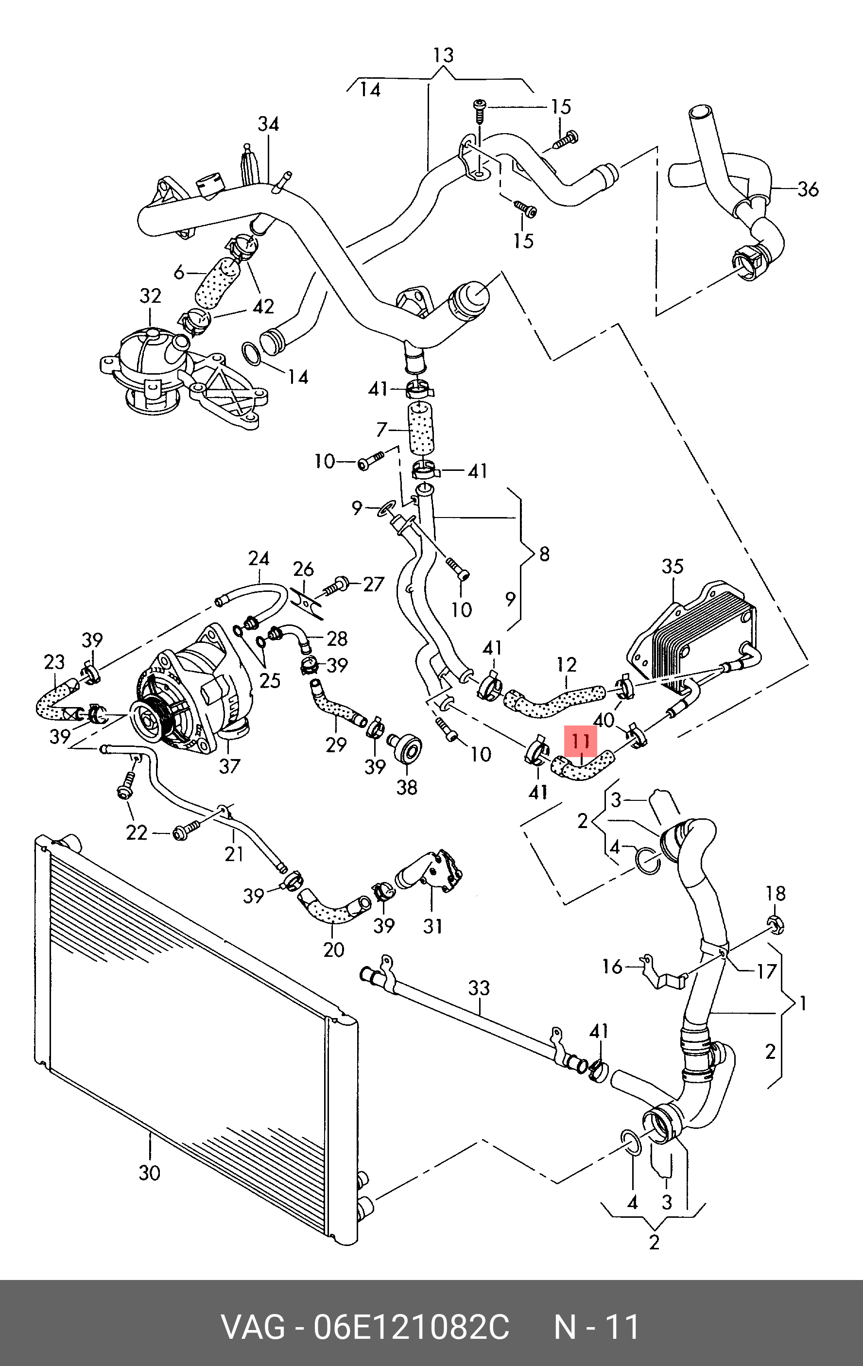 06E 121 082 C VAG патрубок системы охлаждения!\ Audi A4/A6 05-11