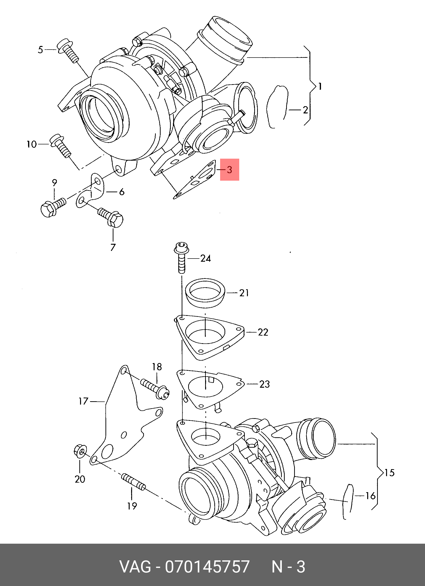 070 145 757 VAG прокладка компрессора!\ VW Touareg/T5/Multivan 2.5TDi AXD/AXE/BAC/BLJ/BLK/BNZ 03
