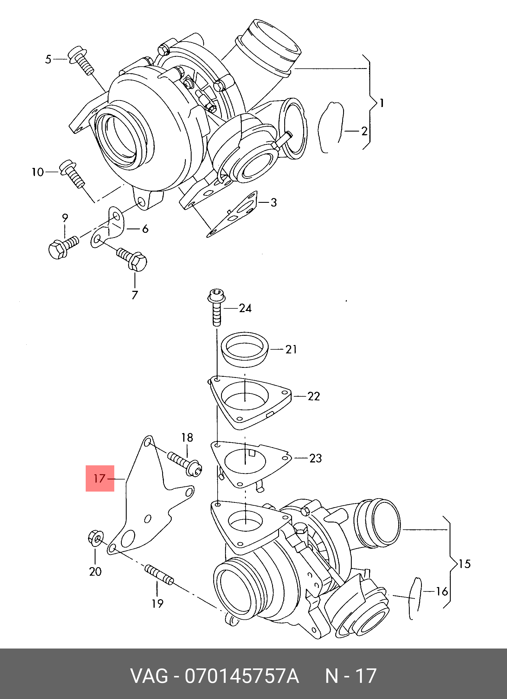 070 145 757 A VAG Прокладка VW T5 (7HB,7HJ,7EB,7EJ,7EF) турбокомпрессора OE