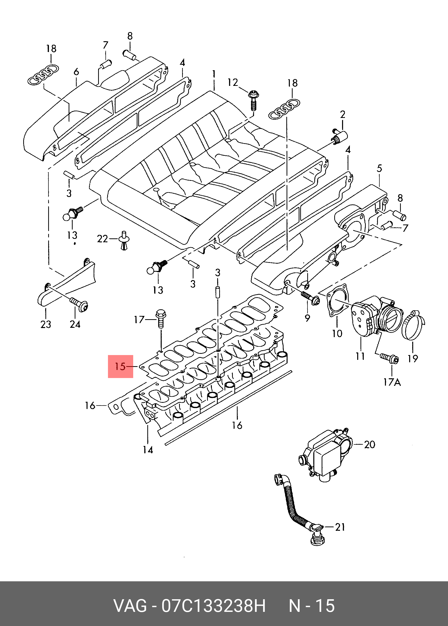 07C 133 238 H VAG ПРОКЛАДКА ВПУСКНОГО КОЛЛЕКТОРА ЦЕНТРАЛЬ 07C133238H