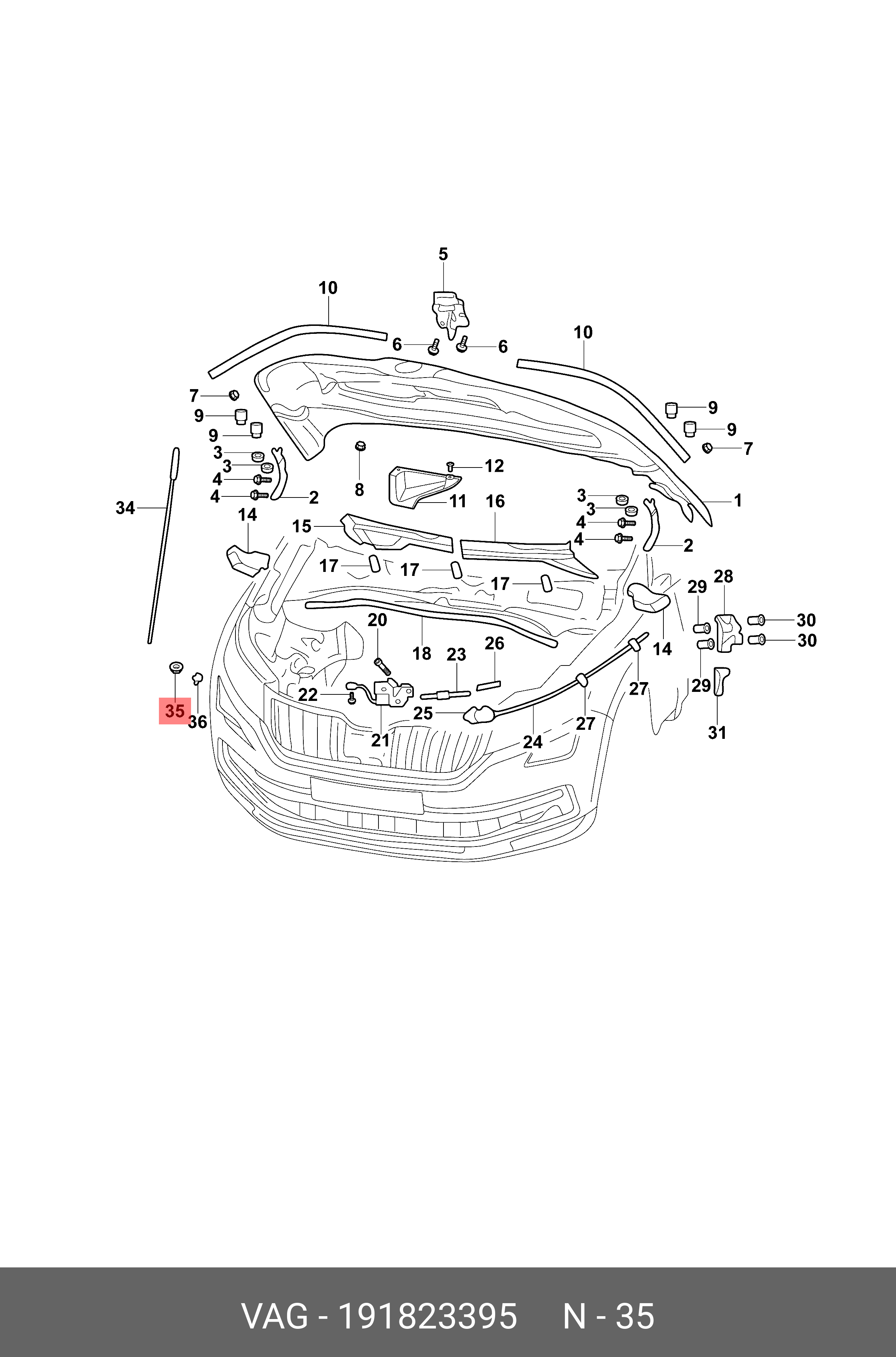 191 823 395 VAG Втулка VW Bora (08-16) SKODA Octavia (13-18) упора капота OE