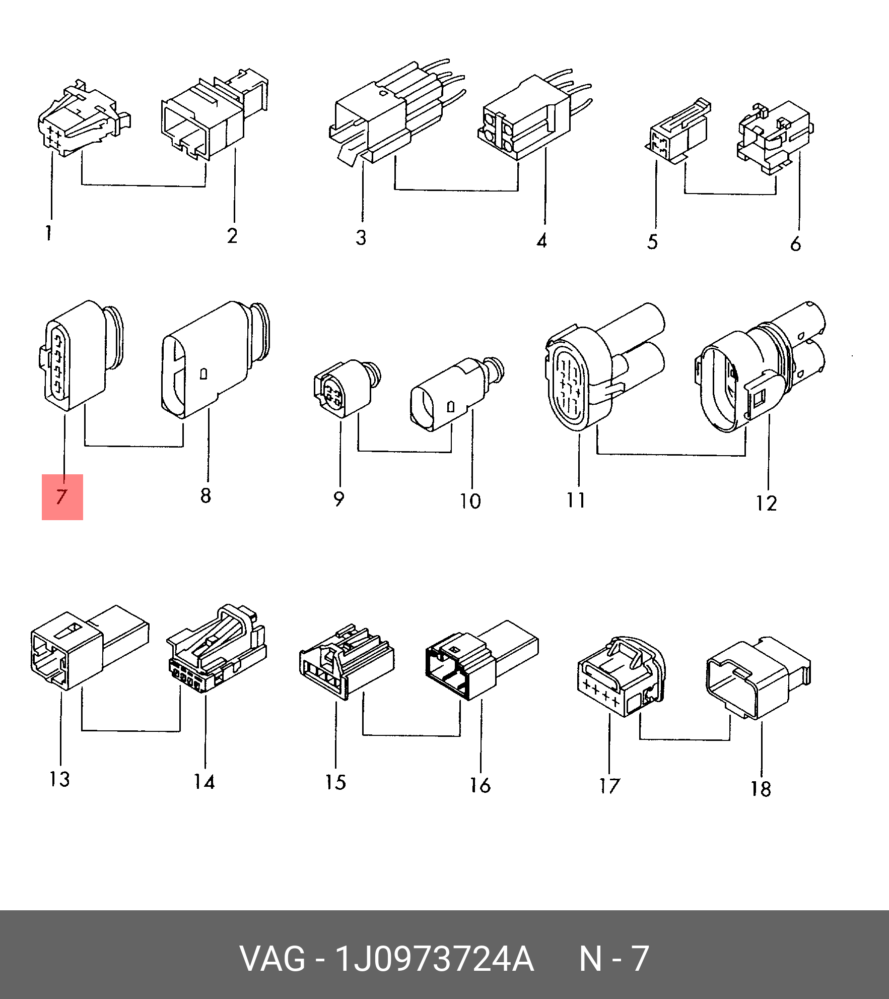 1J0 973 724 A VAG 1J0973724A 1J0973724A Корпус плоского разъема xVAG