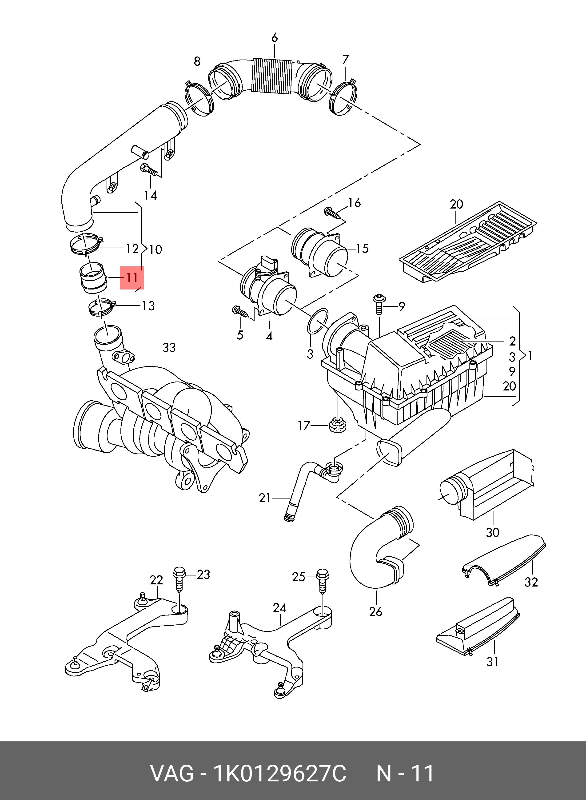 1K0 129 627 C VAG патрубок!\VW/Audi