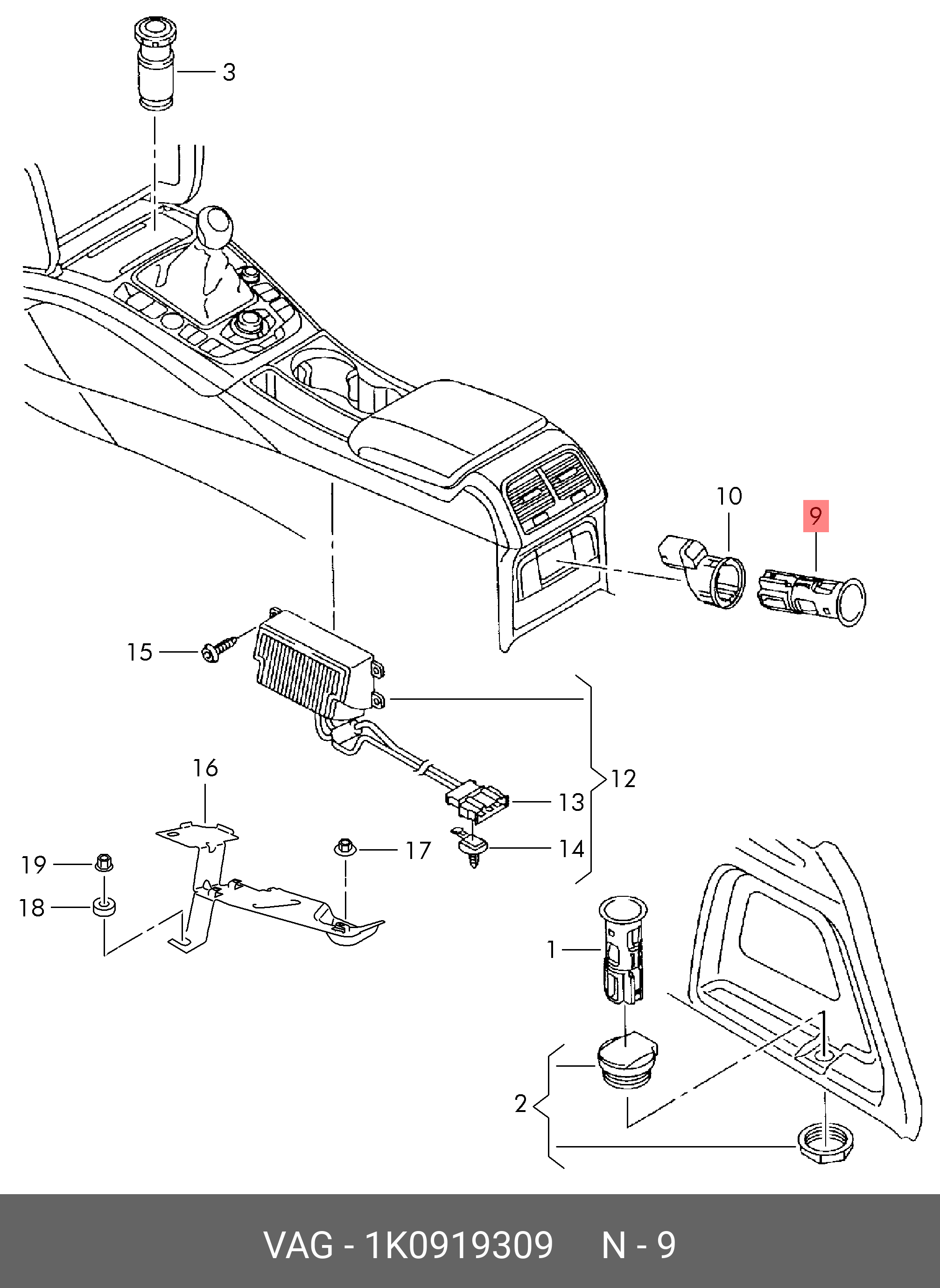 1K0 919 309 VAG Гнездо SKODA Octavia прикуривателя OE