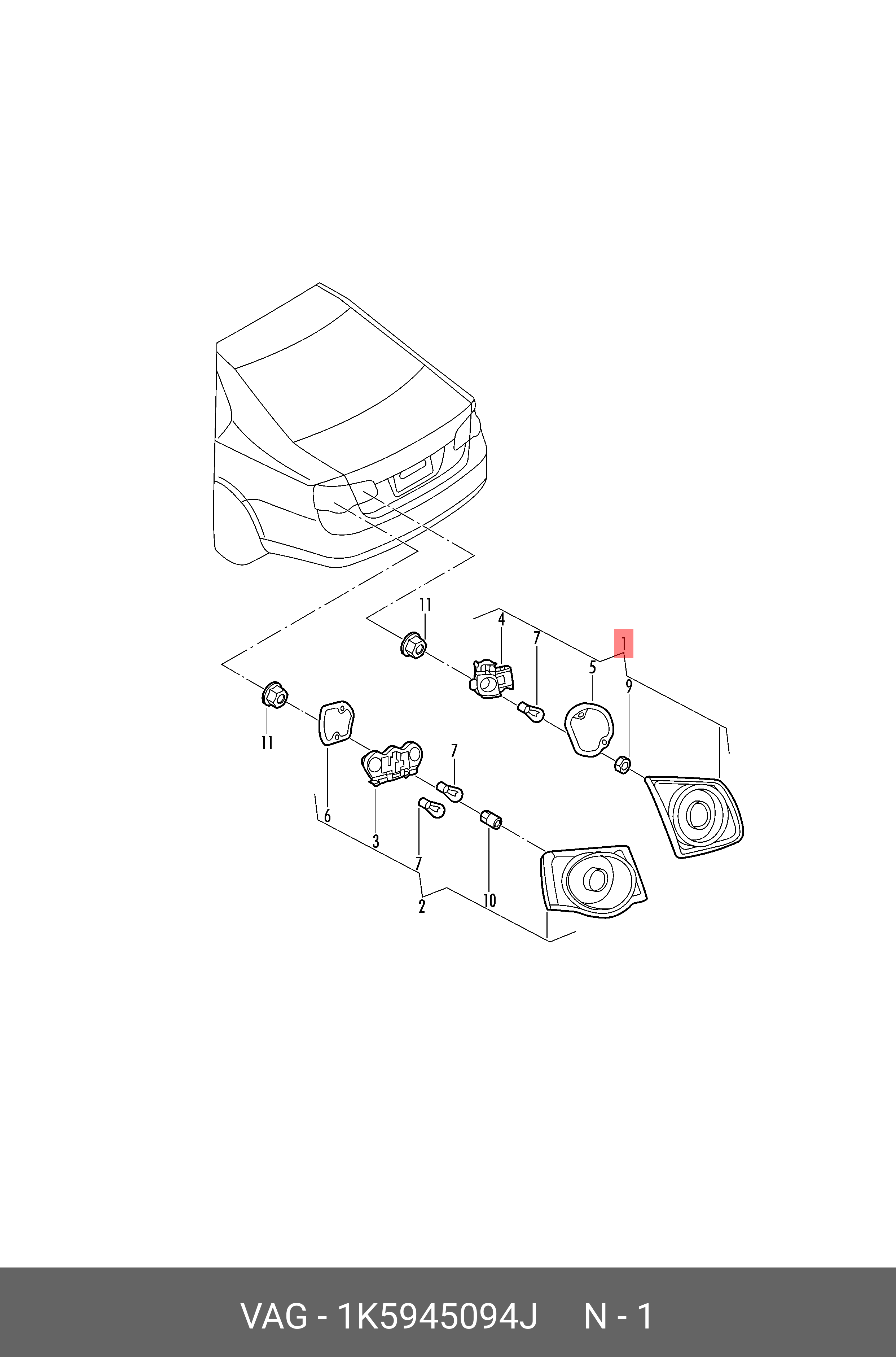 1K5 945 094 J VAG 1K5945094J Фонарь задний с фонарём заднего хода