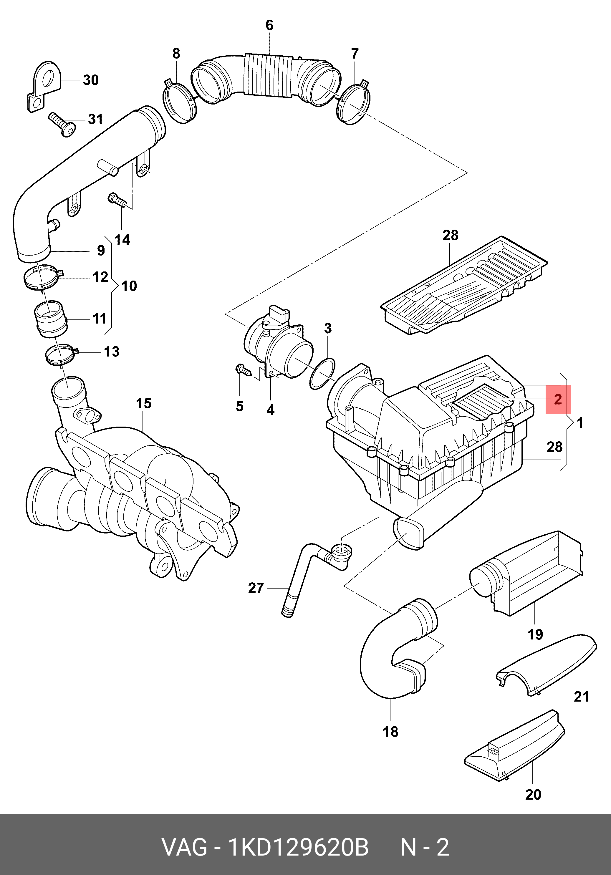 1KD 129 620 B VAG Фильтр воздушный VW Eos,Golf,Passat AUDI A3 OE