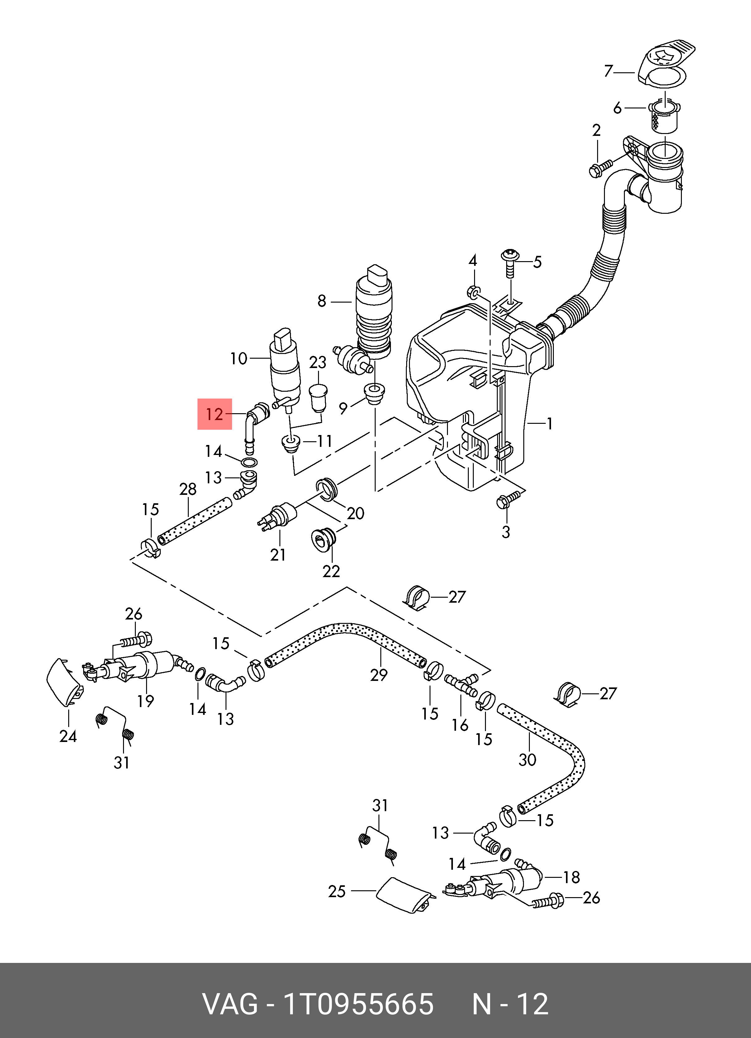 1T0 955 665 VAG Шланг VW Scirocco омывателя фар OE