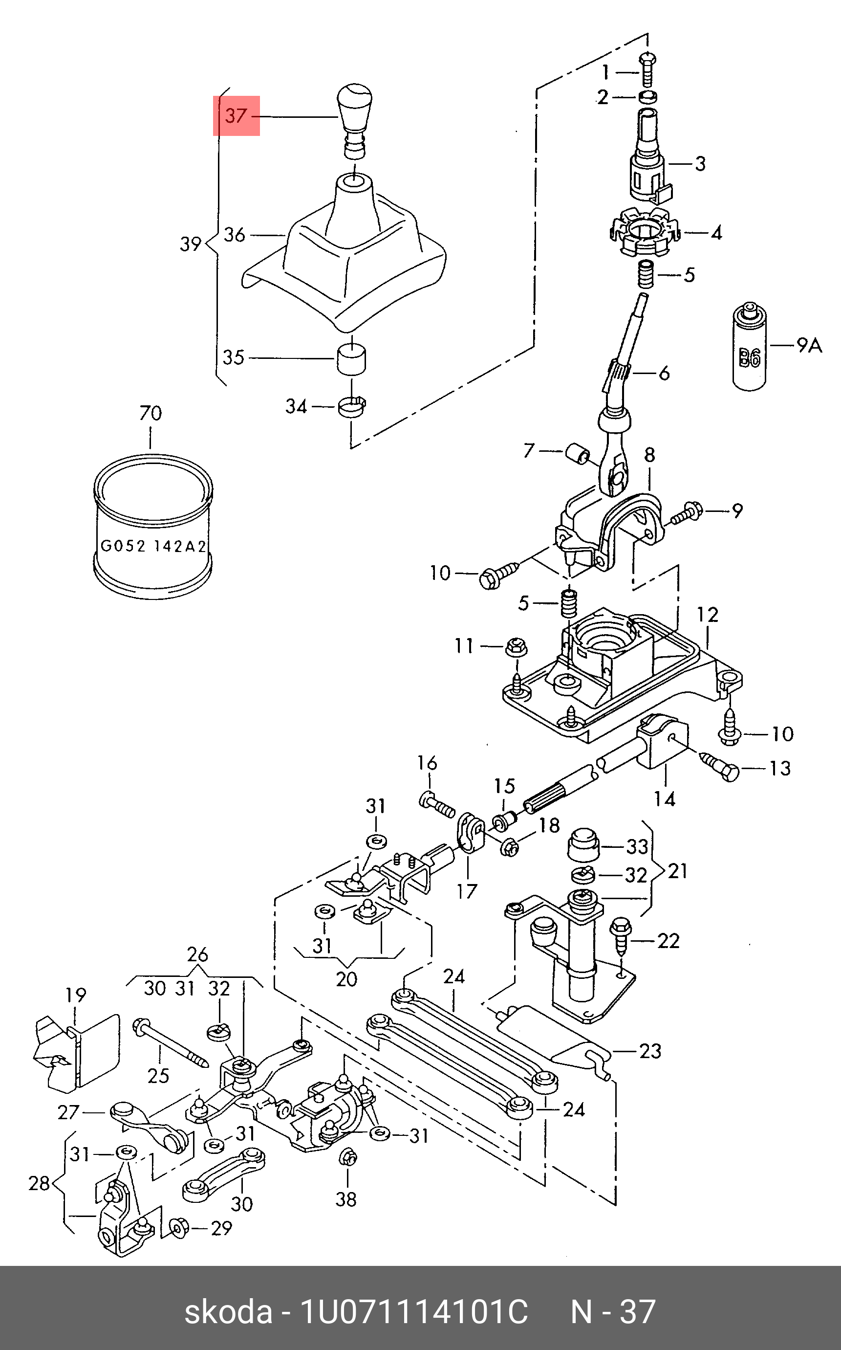 1U0 711 141 01C VAG Рычаг КПП SKODA Octavia (97-) OE