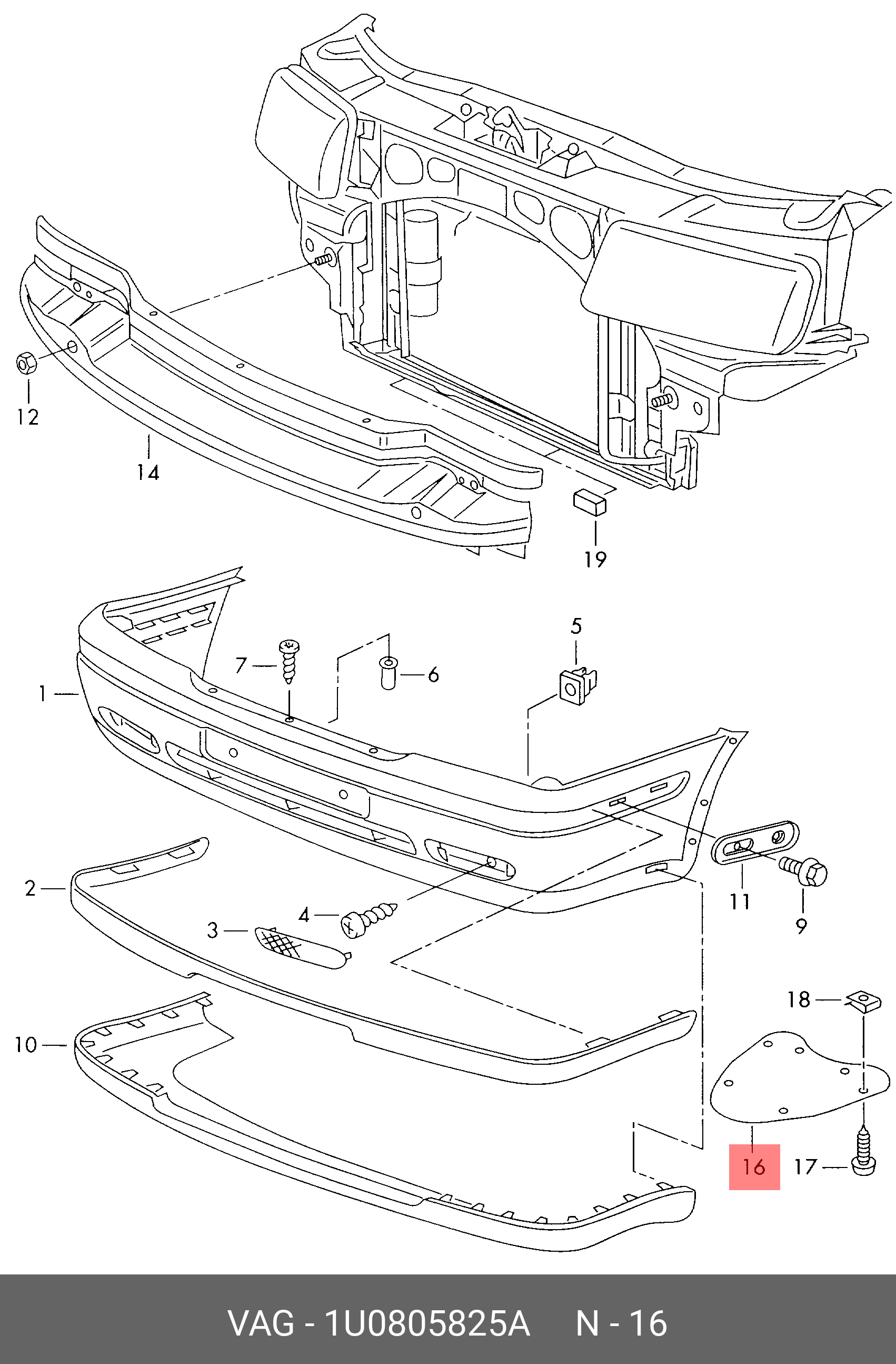 1U0 805 825 A VAG SKODA OCTAVIA (1997-2000)/OCTAVIA (A4) (2000>) ПЕРЕДНЕГО БАМПЕРА ЛЕВЫЙ