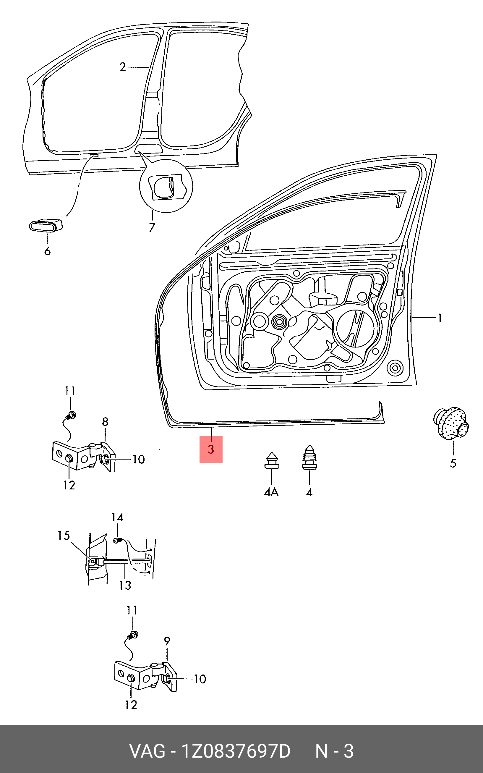 1Z0 837 697 D VAG уплотнитель двери! передней левой\ Skoda Octavia 04>