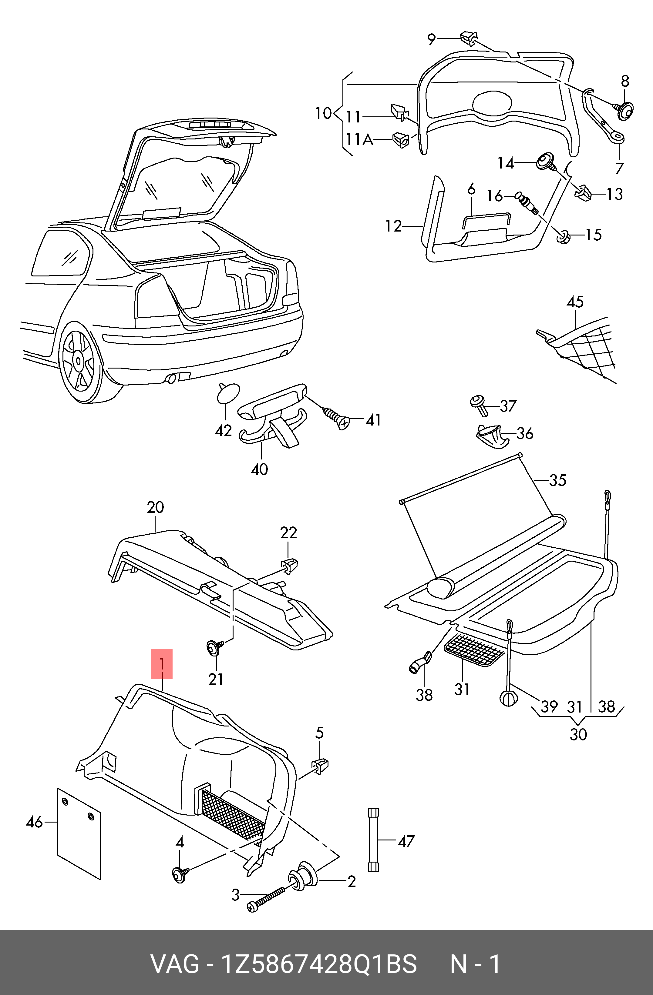| Наименование | 1Z5867428Q 1BS (8 гр.), Обшивка багажника |