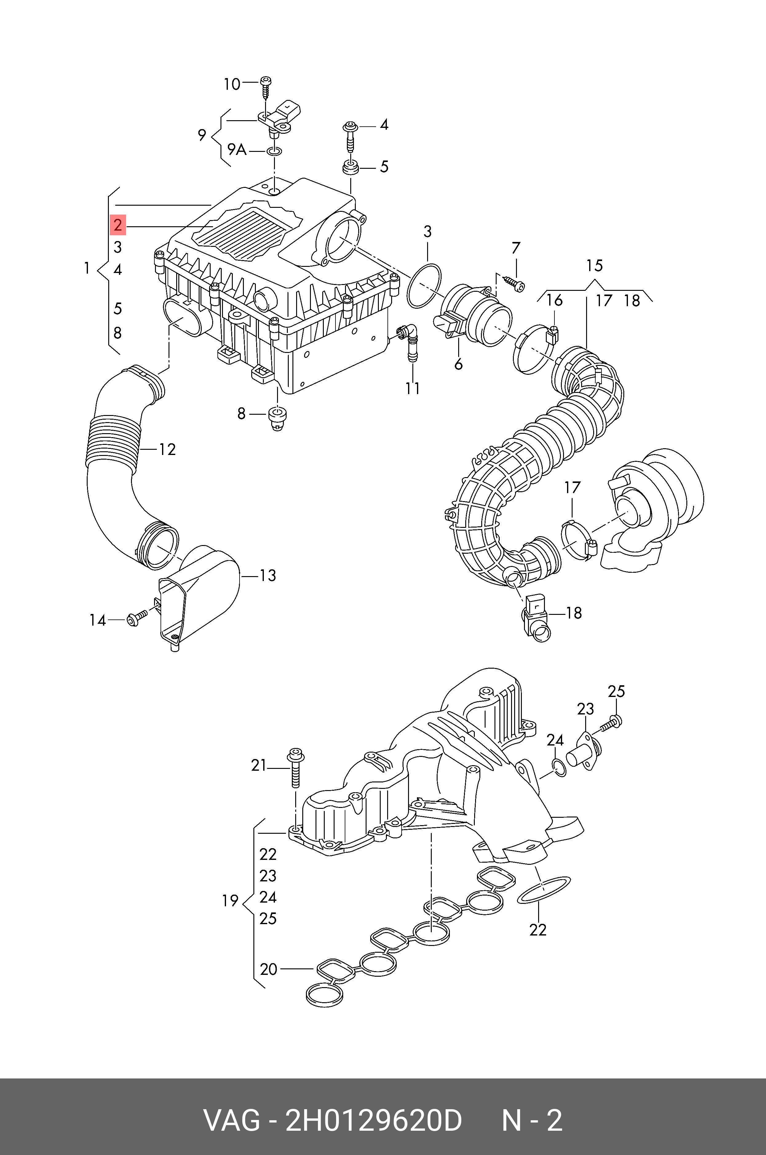 2H0 129 620 D VAG Фильтр воздушный VW Amarok (10-) (2.0D) OE