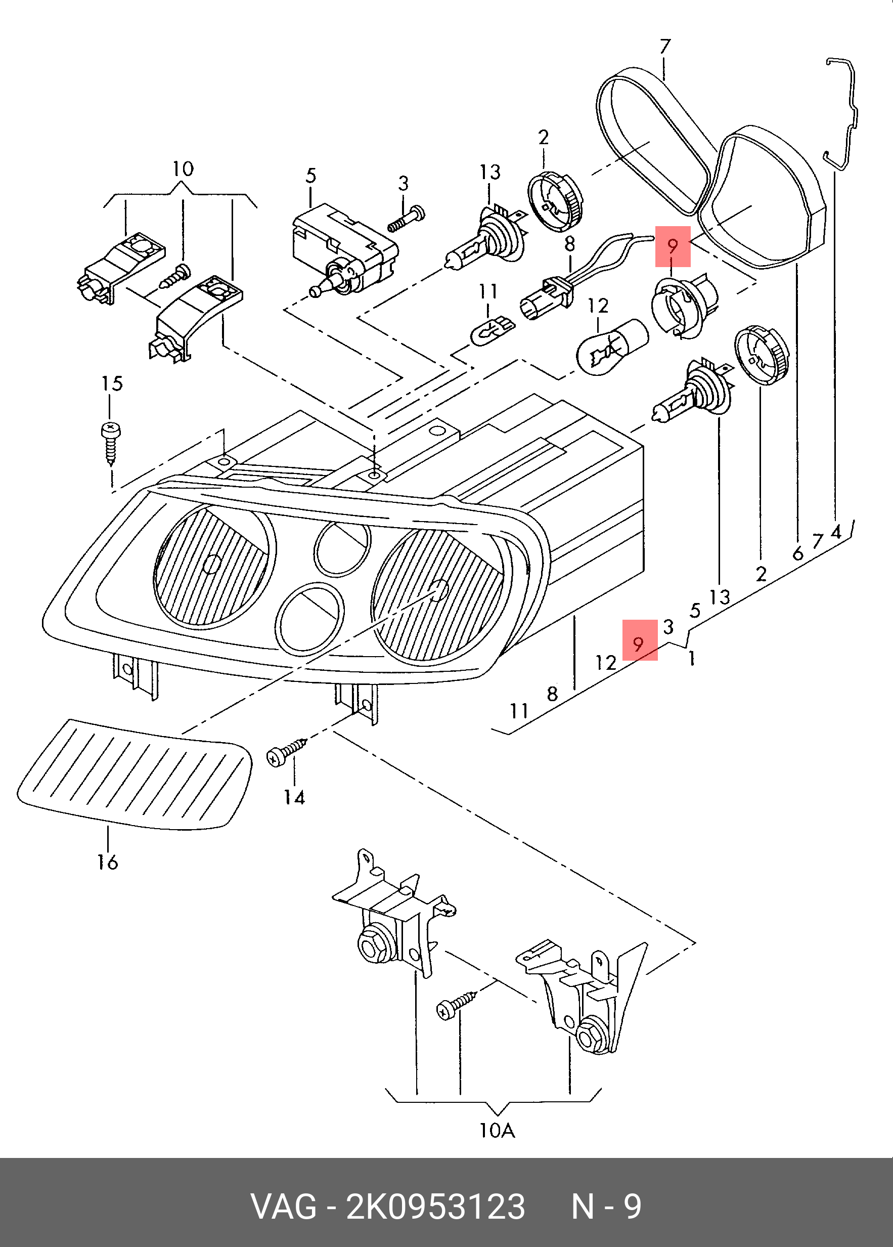 2K0 953 123 VAG Гнездо для патрона лампы