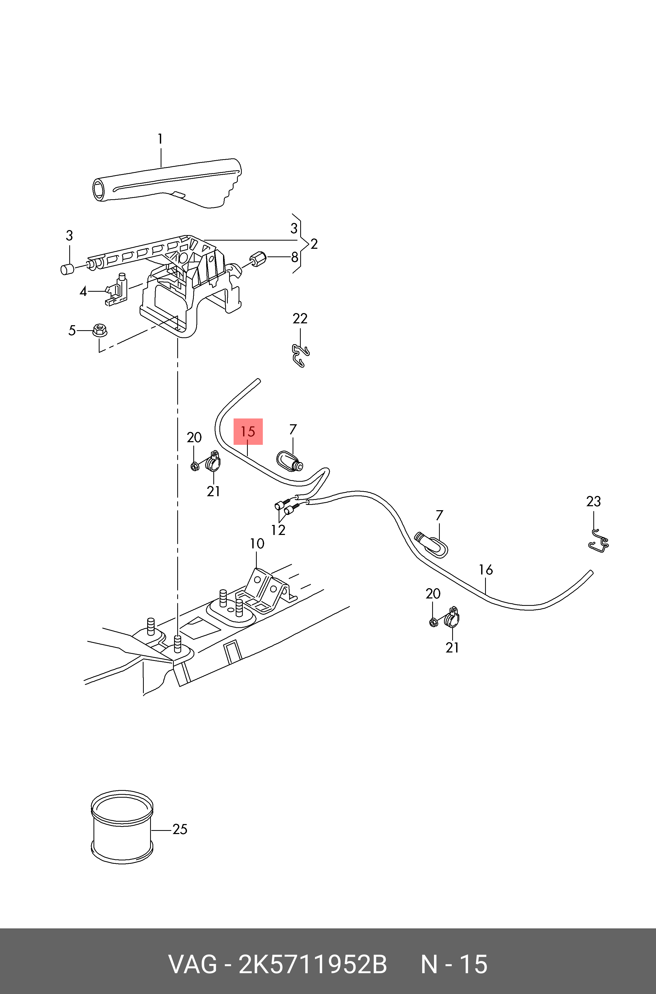 2K5 711 952 B VAG трубка направляющая для троса привода стояночного тормоза! правая\ VW Caddy 04>