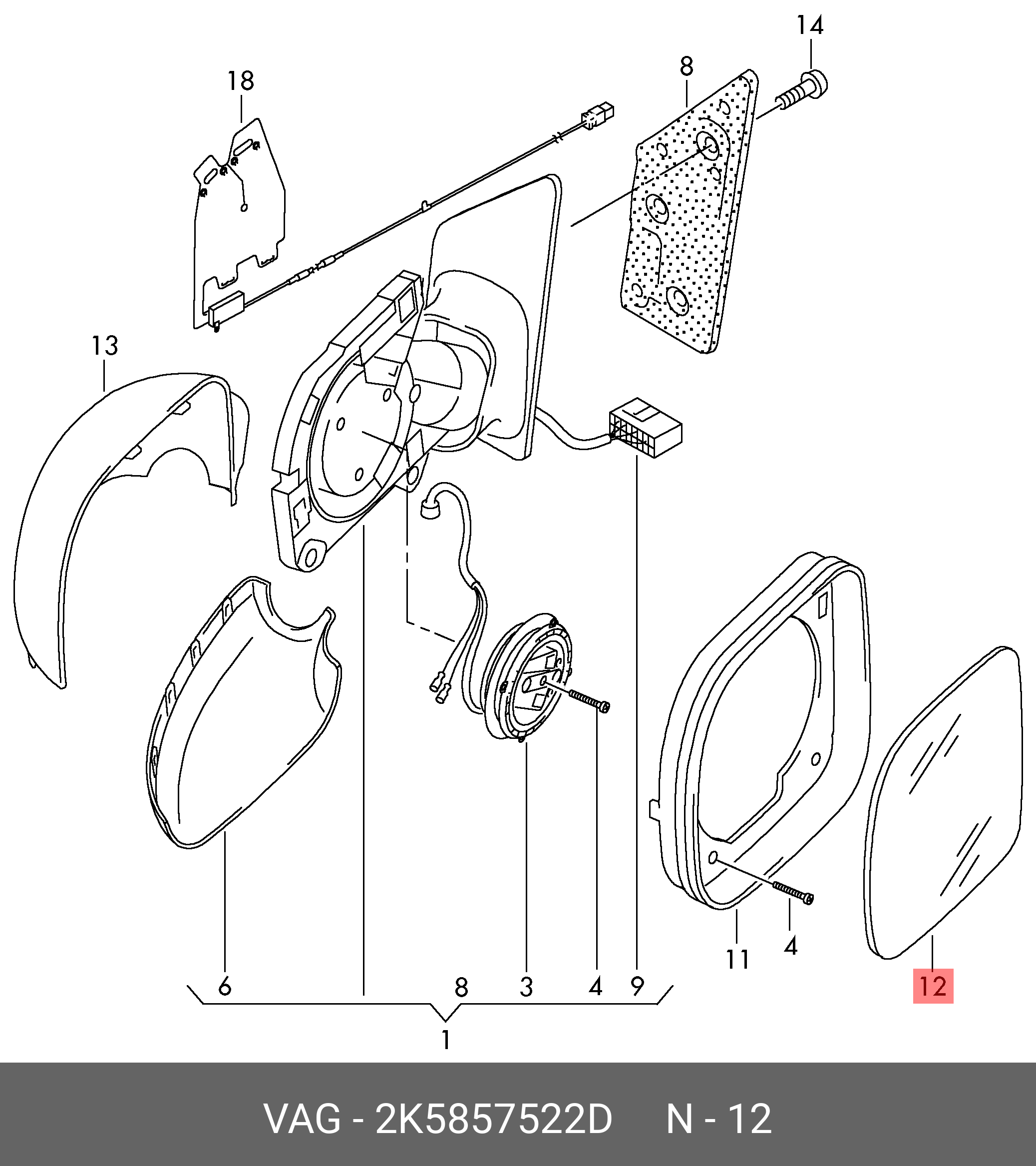 2K5 857 522 D VAG Элемент зеркальный VW Caddy (20-) правый OE